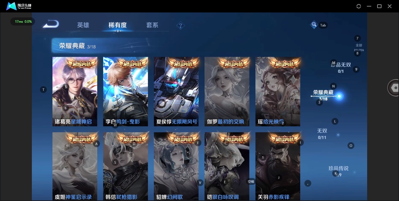 - [11853368]V7 2珍品传说 5传说 124英雄 144皮肤 可修改实名 优质装备:江户川柯南,怪盗基德,黄金射手座,云鹰飞将(小将军),久胜战神,时之恋人-刘备(电焊工),无双飞将 珍宝阁皮:玩趣恶龙 限定皮:逐霄战戟,至尊宝,五谷丰年,逐梦之星,李小龙,匿光启智者,山海·玄木吟(马可年限) 史诗皮:战舞者,东方月初,紫霞仙子,黄金分割率,特工魅影,江河有灵,白蛇,猫狗日记-孙策,猫狗日记-大乔,修罗,摇滚巨星,水果甜心,天才门将,暗隐猎兽者,幽灵船长,鬼剑武藏,逐浪之夏,水晶猎龙者,曙光守护者,金属风暴,圣诞狂欢,圣诞恋歌,鹰眼统帅,魅力维加斯,赏金猎手,未来纪元-赵云,玫瑰异探