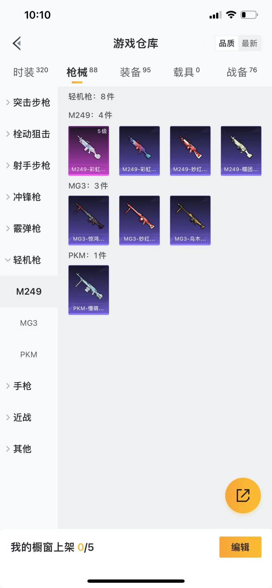 - PX_2111920- 苹果微信-9王牌印记-11粉装-9特效枪-1载具-62554热力值-134套装-172枪皮-0卓越印记-0传奇印记 【11粉装】,宝贝奶油派,天使彩虹糖,童趣迷兔,绯穹魔姬,荧海星豚,碧影闪光,酣梦娃娃,旋转彩虹,冰霜白皇,炙焰红王,数码大师 【9特效枪】AKM-甜心宝贝-7级 M416-灵猫魔法师-3级 M416-五爪金龙-7级 Kar98K-巳巳如意-4级 Mk14-甜