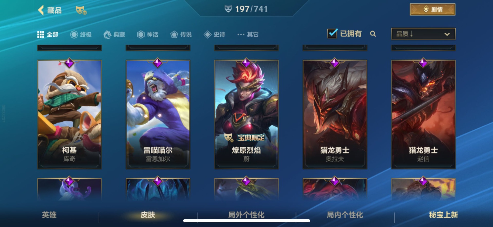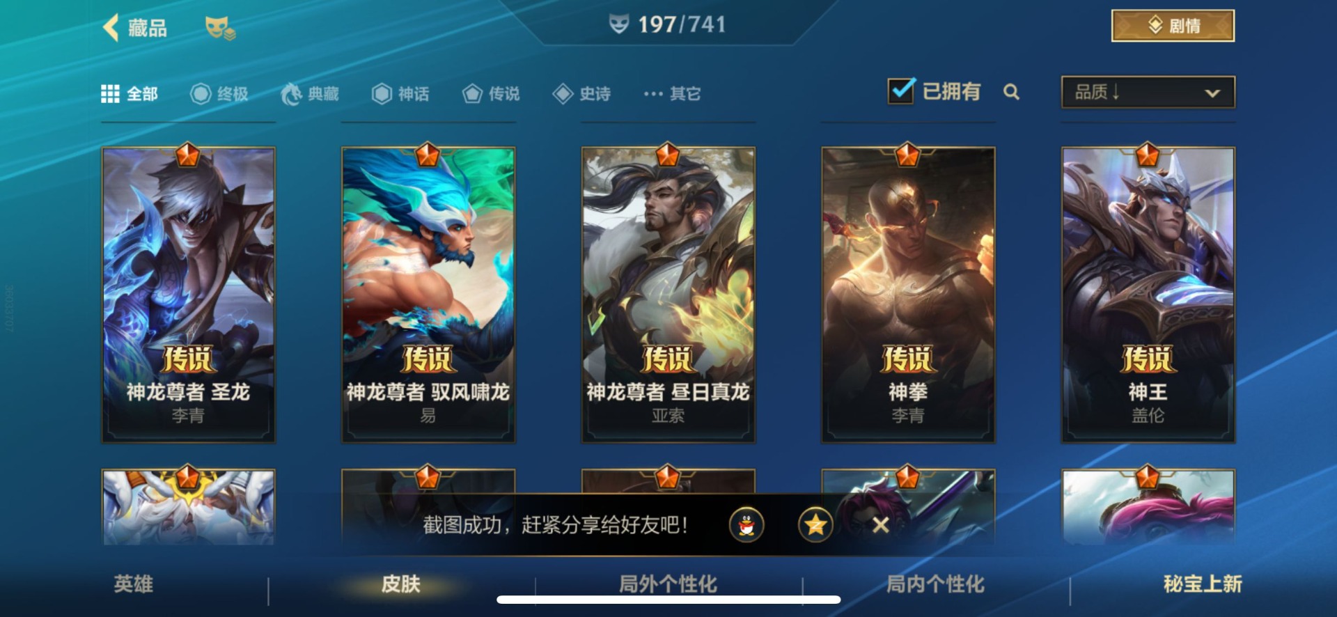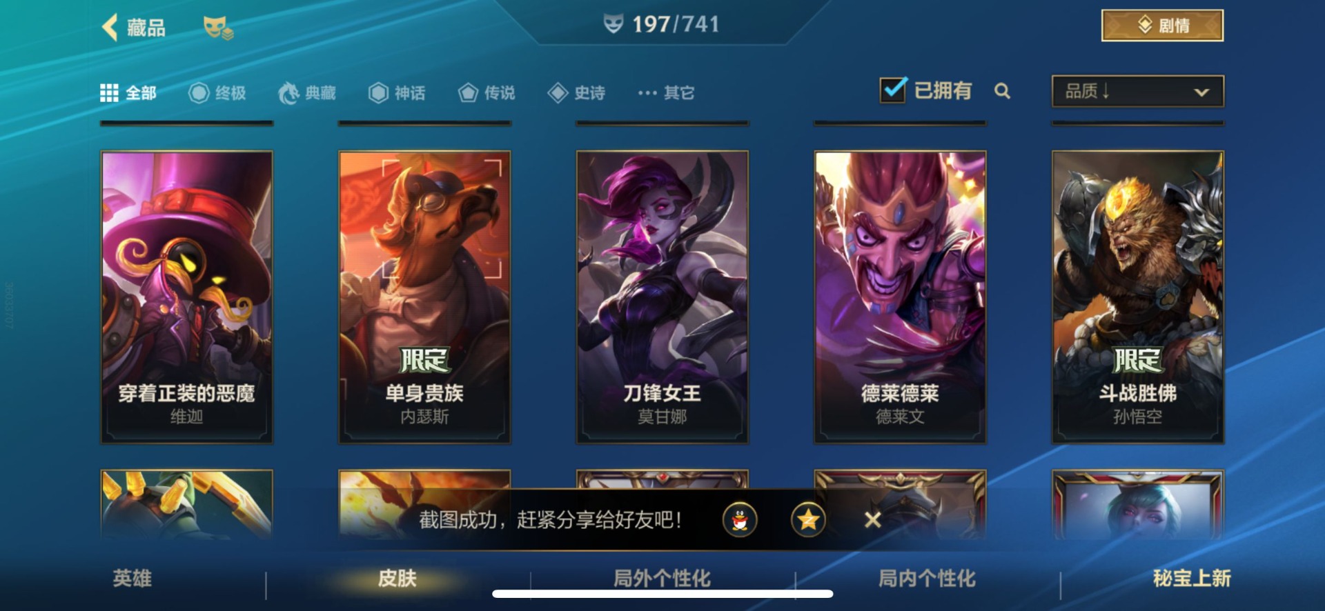 - PX_2109925-Q/永恒钻石/253皮肤/125英雄/2典藏/0珍品无双/0无双/0珍品传说/18传说/78史诗/9稀有英雄 【2 典藏皮肤】全息碎影 孙悟空,弑枪猎影 韩信, 【18 传说皮肤】启明星使 虞姬,逐花归海 澜,零号·赤焰 孙悟空,齐天大圣 孙悟空,仲夏夜之梦 貂蝉,时雨天司 诸葛亮,炽阳神光 镜,寅虎·瑞焰 鲁班七号,乘龙·问璇玑 孙尚香,时之恋人 刘备,山海·炽霜斩 李信,