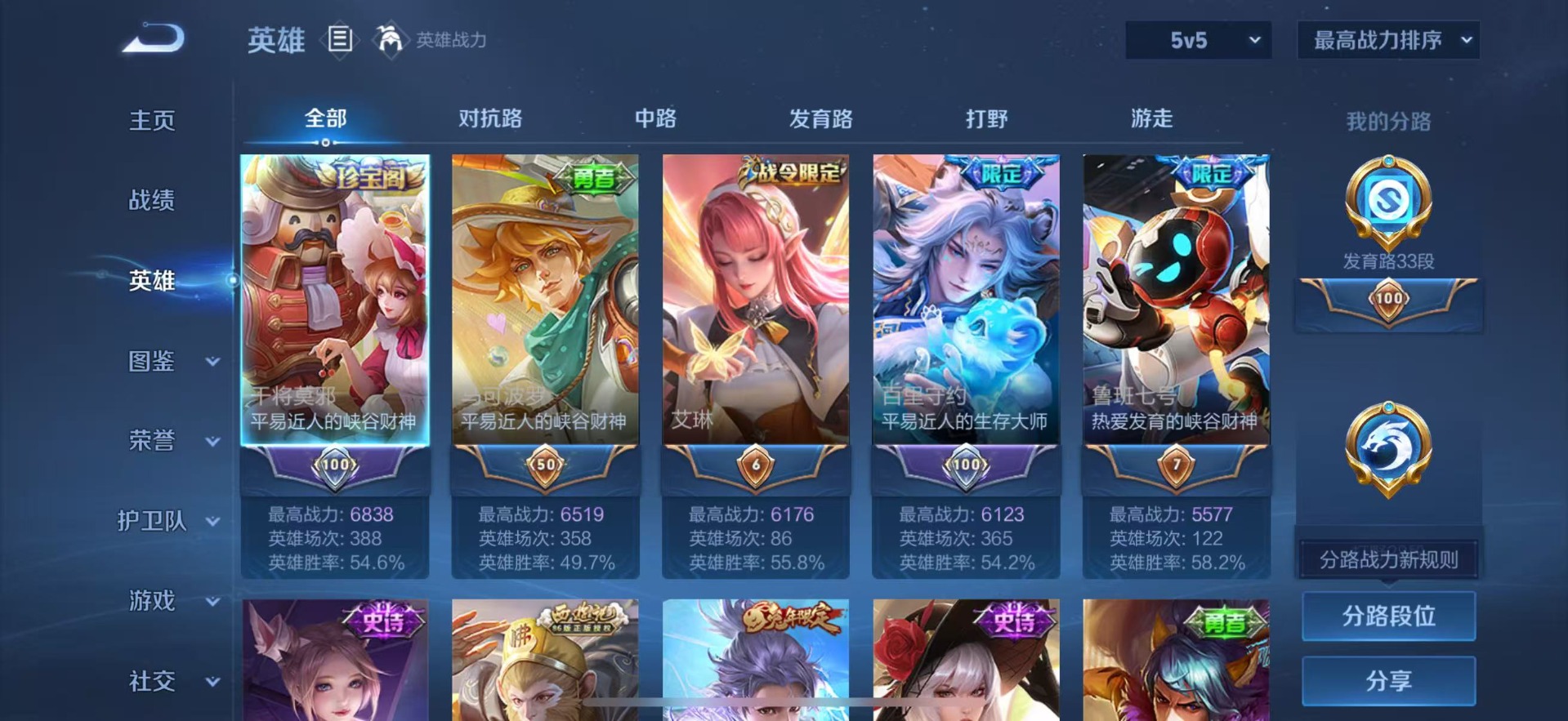 - [12116600]V7 6传说 123英雄 223皮肤 可修改实名 女号 优质装备:冠军飞将,绛天战甲(鸡嘴战神),猫影幻舞,地狱之眼,胖达荣荣,鹤羽星尊,涂山容容 珍宝阁皮:玩趣恶龙 限定皮:至尊宝,飞衡(韩信年限),高山流水,五谷丰年,青龙志(铠年限),梁祝,御风骁将(吕布年限),李小龙,霸王别姬-项羽,默契交锋-花木兰,大圣娶亲 史诗皮:幻珠鲛人,百相守梦-黄忠,织梦人,电玩小子(小书包),特工魅影,千年之狐,偶像歌手,电玩·爆裂旋风,猫狗日记-孙策,时之恋人-孙尚香,节奏热浪,修罗,女仆咖啡,摇滚巨星,水果甜心,天才门将,心灵骇客,鬼剑武藏,心灵战警,地狱岩魂,纤云弄巧,缤纷独角兽,金属风暴,圣诞狂欢,圣诞恋歌,鹰眼统帅,魅力维加斯,赏金猎手,无心