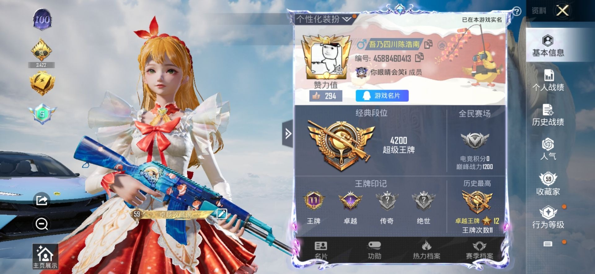 [11520340]4粉装 5特效枪 1载具 11印记 可二次 可修改实名 优质装备:路特斯ELETRE(冰川蓝),俏皮狐尾,M249彩虹甜喵(M249-彩虹甜喵),七级M249-彩虹甜喵,M416电玩时刻,UMP45量子极限,星穹咏叹调,绯穹魔姬,Kar98K-巳巳如意 热门装扮:小蓝 稀有枪皮:DP-28-豹影疾电 五级特效枪:五级UMP45-量子极限,五级Kar98K-巳巳如意,五级DP-28-豹影疾电,五级M416-电玩时刻 紫色装扮:SS22特训,孙悟空,SS23特训,娇憨猪猪,俏皮奶喵,萌趣咩咩,SS21特训,SS31特训套装,人气偶像,冰川特警,冷焰舞者,霓虹热舞,旭日情侣,极速光影,SS30特训套装,云朵鹅,雪绒豹,SS33特训套装,顶瓜瓜,混沌火种,SS20特训,时空追击者,飞驰魅影,音速流光,极速竞梦,SS19特训,水晶王族,酒红色名流,野性山猫,长空猛禽,雨林探路者,霓虹街区,风暴特警,缤纷果语,蓝彩潮人,蓝色运动,街头潮人,飞行日记,魅力单车,麻辣教官,黄色伏地魔,黄色名流,黄色运动,黑色伏地魔,龙的传人,龟仙人,香桃花海,柠萌假日,沙漠兵团,海岛探路者,深蓝色名流,幻影武者,完美偶像,帅气教官,幻世战舞者,探宝勇士,湖蓝色名流,白色伏地魔,破晓战魂,破蛋小黄鸡,空岛之星,竞技达人朋克,红色运动,甜蜜熊情侣,王牌教练,牛气冲天,炫蓝之夏,牛气满满,猛禽,特殊使命,特训学院,先驱飞行员,纯真浪花,热情海星,SS28特训,卖崽青蛙,创世·追猎,冰公主,鱼渊荷华,玉兔迎春,燕燕于飞,巳巳如意,青团波波,糖糖葫芦,棉花软糖,竞技名士,情公主,惊鸿侠骨,SS24特训(SS24特训套装),SS25特训,锦衣飞扬,粉红小猪,宝石天鹅,焰鹰斗篷,幻羽潜行,幽夜迷踪,SS27特训,雪晶战甲,Alan Walker,蝶吟花词,浪漫天命,华灯初上,SS26特训,春光漫游,快闪甜心,贝斯之夜,大橘大利,星渊小夜曲,星影赞美诗,耀粉歌者,粉恋花,蓝冰羽,紫幽梦,SS32特训服(SS32特训套装),风舞幻音,萌黄之夏,樱梦幻音,白糯汤圆,果冻柠檬,光之冒险 优质战备:精灵梦叶罗丽降落伞,巴啦啦小魔仙降落伞,炙焰牛王降落伞,恐龙拽拽降落伞,幻彩电音降落伞,冷漠罗丽降落伞,筑梦精灵降落伞,至尊龙雀降落伞,飞行器-齐天大圣,青春物语降落伞