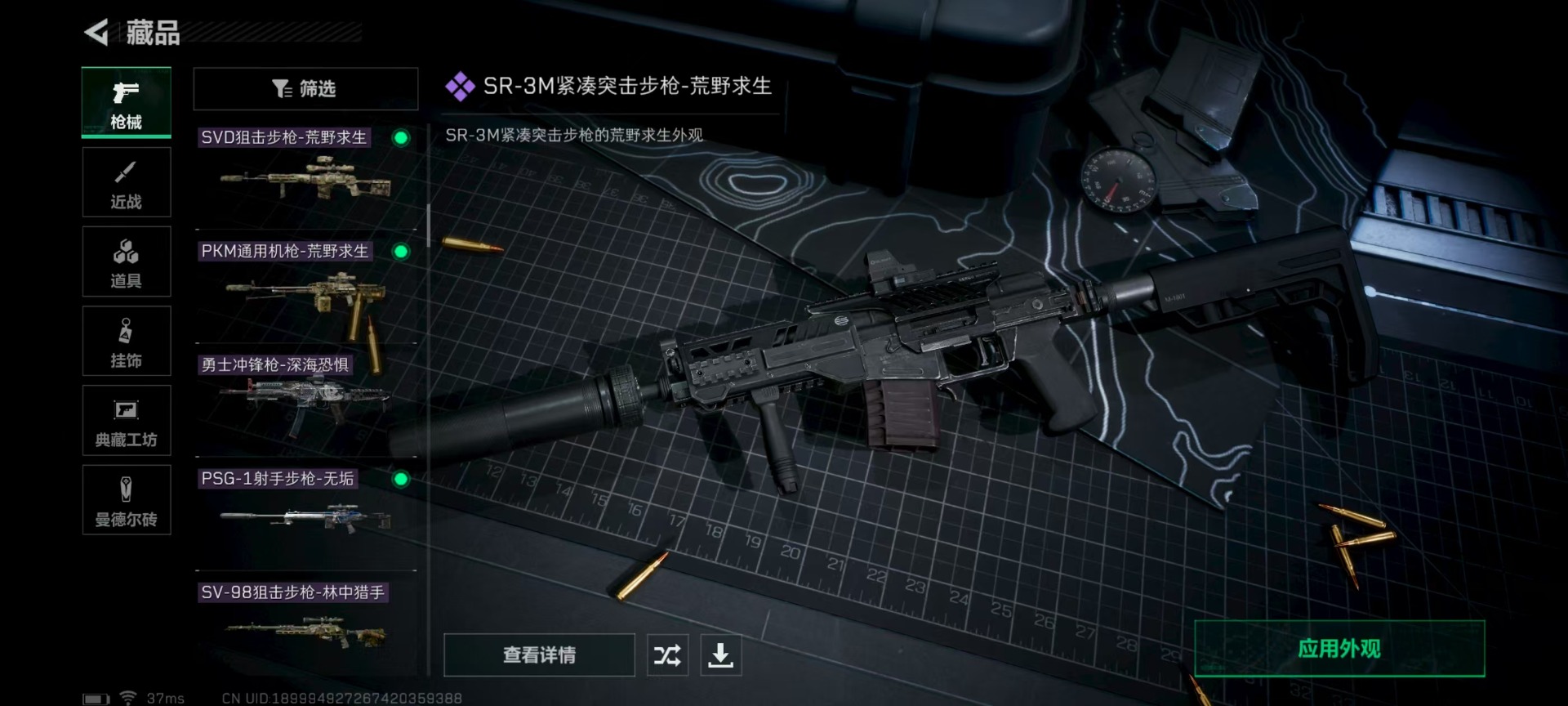 - PX_2100818-??/枪械19/装备655/载具3/战备295/王牌印记22/热力值155949/五级AKM-梦之光华/七级SCAR-L-青春物语/六级GROZA-旋转彩虹/七级AUG-星之彼岸/七级Vector-环太平洋/五级AKS-74U-信仰神谕/七级P90-粉樱探戈/五级Kar98K-巳巳如意/五级Mk14-精灵梦叶罗丽/一级AMR-炫光之旅/五级AMR-智耀战神/二级M417-第五