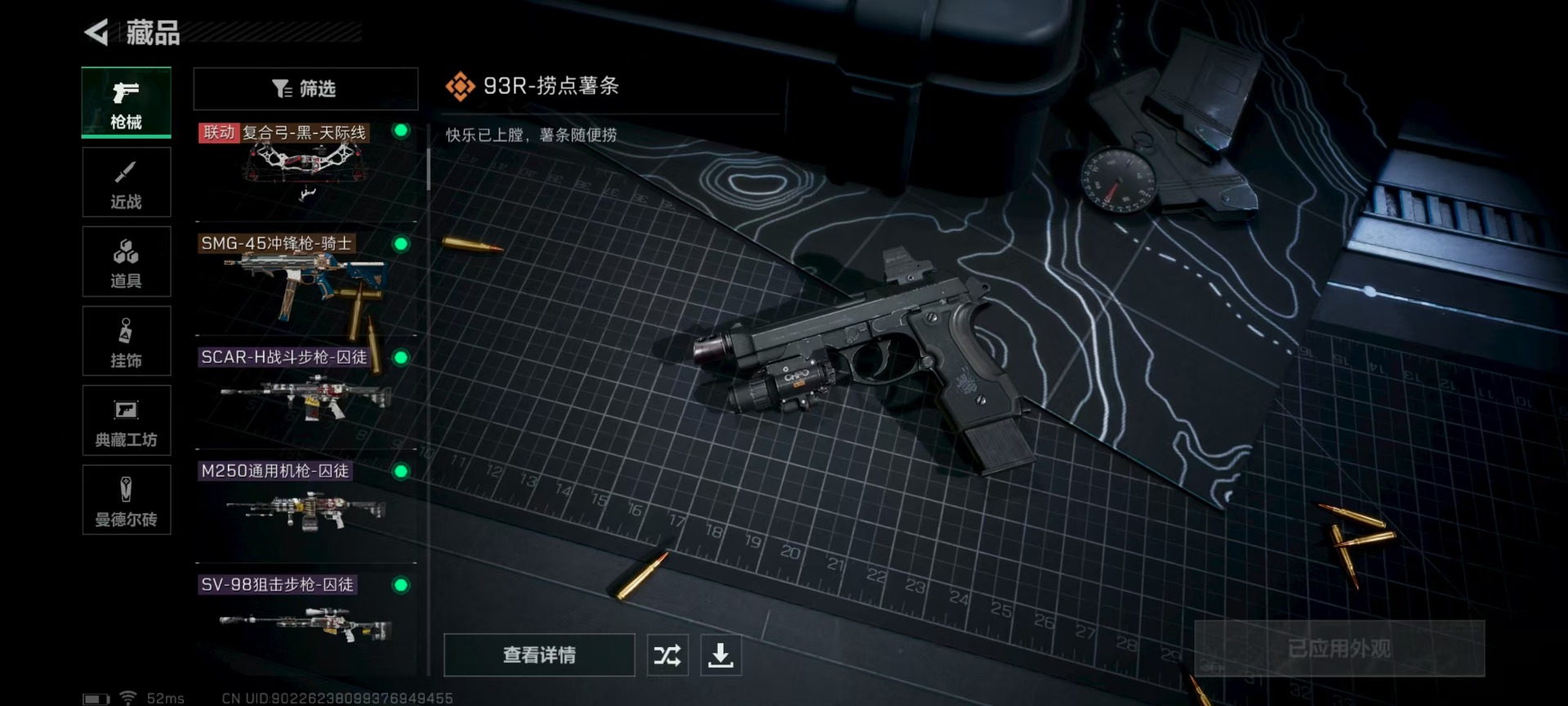 [11521507]总资产:259.1M 1干员外观 7传说枪械 哈夫币:118K 顶级安全箱(3×3)9.15号到期 可二次 可修改实名 优质装备:顶级安全箱(3x3) 烽火地带段位:黑鹰 全面战场段位:上等兵 传说武器皮肤:SMG45冲锋枪-骑士,M4A1突击步枪-阿米娅,复合弓-黑-天际线,AWM狙击步枪-捞点薯条,腾龙突击步枪-捞点薯条,93R-捞点薯条,勇士冲锋枪-能天使-午夜邮差 史诗武器皮肤:AUG突击步枪-蝮蛇,MP5冲锋枪-深海恐惧,勇士冲锋枪-深海恐惧,SG552突击步枪-深海恐惧,AKM突击步枪-林中猎手,M16A4突击步枪-竞赛选手,M1014霰弹枪-林中猎手,SV-98狙击步枪-林中猎手,PTR-32突击步枪-英雄,M250通用机枪-囚徒,SV-98狙击步枪-囚徒,SCAR-H战斗步枪-囚徒,QBZ95-1突击步枪-曙光,SVD狙击步枪-阿萨拉工艺,S12K霰弹枪-曙光,M700狙击步枪-竞技风 干员外观:露娜-黑·天际线