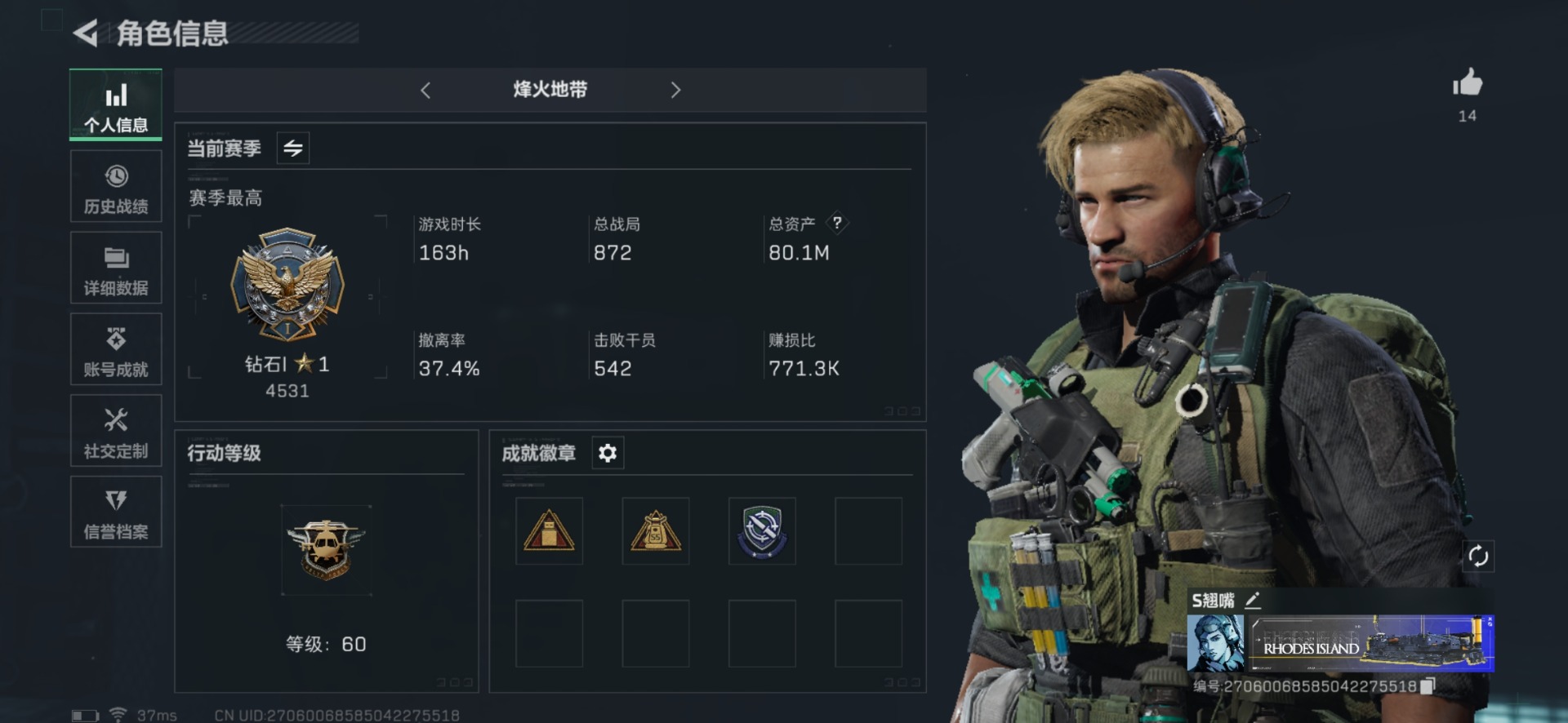 [11521582]总资产:80.1M 11传说枪械 哈夫币:529.394K 顶级安全箱(3×3)9.15号到期 可二次 可修改实名 优质装备:顶级安全箱(3x3) 烽火地带段位:钻石 全面战场段位:校官 传说武器皮肤:UZI冲锋枪-特斯拉线圈,AWM狙击步枪-捞点薯条,腾龙突击步枪-捞点薯条,93R-捞点薯条,AK-12突击步枪-特斯拉线圈,SR-3M紧凑突击步枪-特斯拉线圈,勇士冲锋枪-能天使-午夜邮差,复合弓-黑-天际线,725双管霰弹枪-送葬人-无题密令,M4A1突击步枪-阿米娅,CAR-15突击步枪-阿米娅