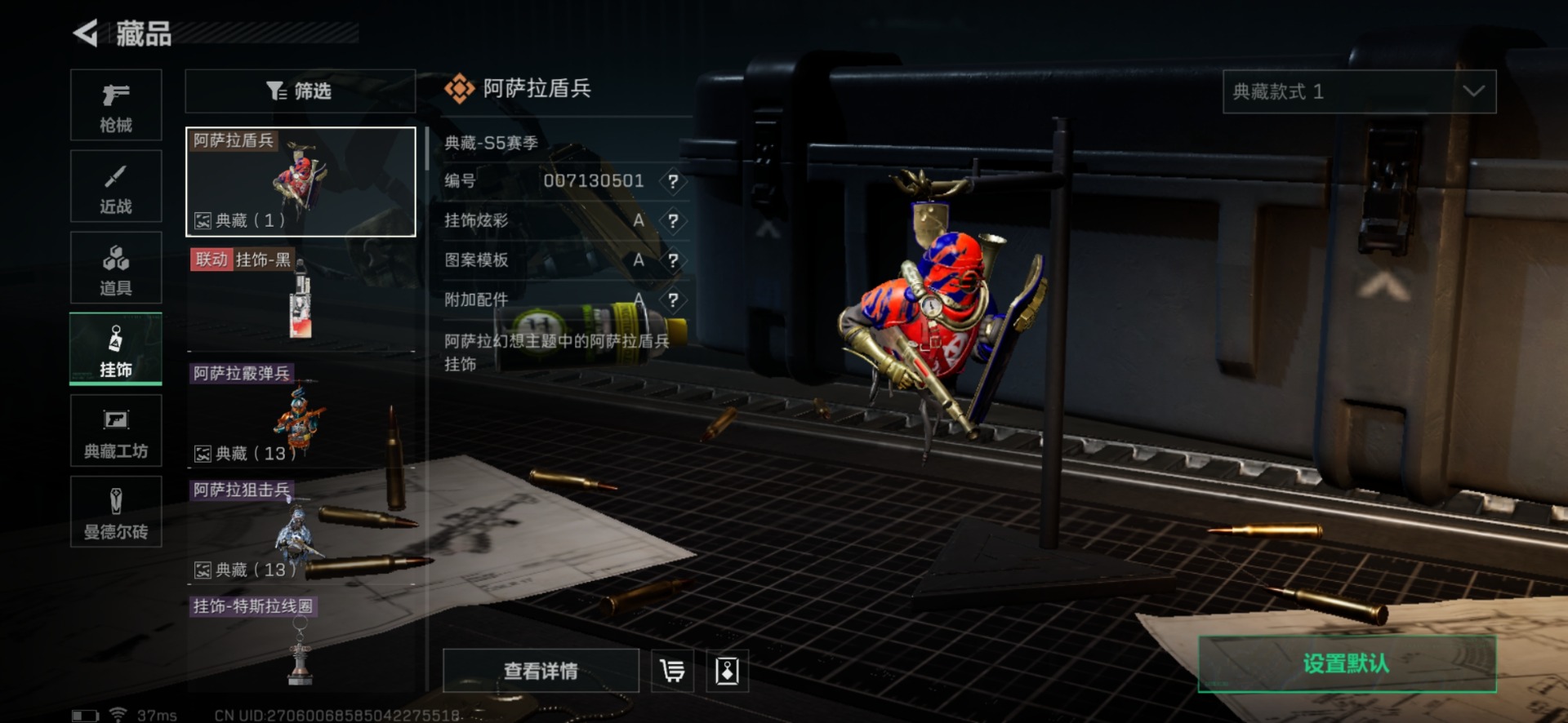 - PX_2101706-安卓QQ 历史总热力值:23293 粉装数量:5 特效枪数量:2 载具数量:2 王牌印记:1 历史最高段位:超级王牌 套装数量:58 时装数量:262 枪械数量:52 战备数量:33 装备数量:84 载具:玛莎拉蒂Ghibli(粉),玛莎拉蒂Ghibli(蓝) 时装:套装-守护骑士,套装-幻影战神,套装-火曜朱雀,套装-金曜白虎,套装-银河战甲,套装-SS10特训,套装-SS