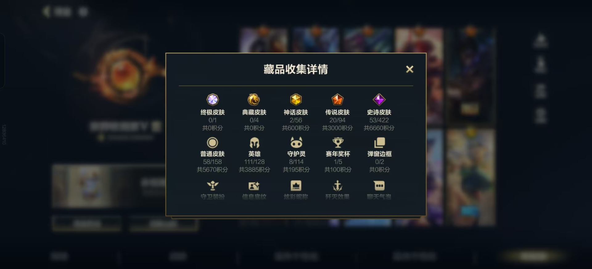 [11521611]可二次 可修改实名 2神话 20传说 53史诗 133皮肤 111英雄 铂金 皮肤:金克丝-清剿小队,金克丝-双城之战,金克丝-光耀之芒,金克丝-星之守护者,莎弥拉-斗魂觉醒,莎弥拉-西部魔影 持枪女巫,莎弥拉-涂鸦小队,莎弥拉-灵能特工,提莫-小蜜蜂,提莫-灵魂莲华,提莫-熊猫,提莫-兔宝宝,烬-龙冕异士,烬-腥红之月,烬-西部牛仔,赵信-龙冕先锋,赵信-猎龙勇士,赵信-秘密特工,艾瑞莉娅-斗魂无双,艾瑞莉娅-光明哨兵,艾瑞莉娅-冰霜之刃,雷克顿-黯晶巨鳄,雷克顿-鳄霸,雷克顿-枯萎之壤,墨菲特-暗星,墨菲特-无畏号,墨菲特-冰川巨兽,拉克丝-暗星女王,拉克丝-游侠法师,拉克丝-战斗学院,艾希-王牌司令,艾希-西部天使,艾希-极地女神,卡莎-春晖仙子 苍云缥缈,卡莎-K/DA ALL OUT,卡莎-弹幕天使,菲兹-欧米伽小队 鬼影蛙人,菲兹-绒毛,菲兹-虚空海灵,潘森-未来战士,潘森-清剿小队,潘森-猎龙勇士,菲奥娜-绯金丽刃,菲奥娜-福牛守护者,菲奥娜-皇家守卫,亚索-西部牛仔,亚索-黑夜使者,亚索-源计划:风,艾克-探梦奇旅,艾克-时之砂