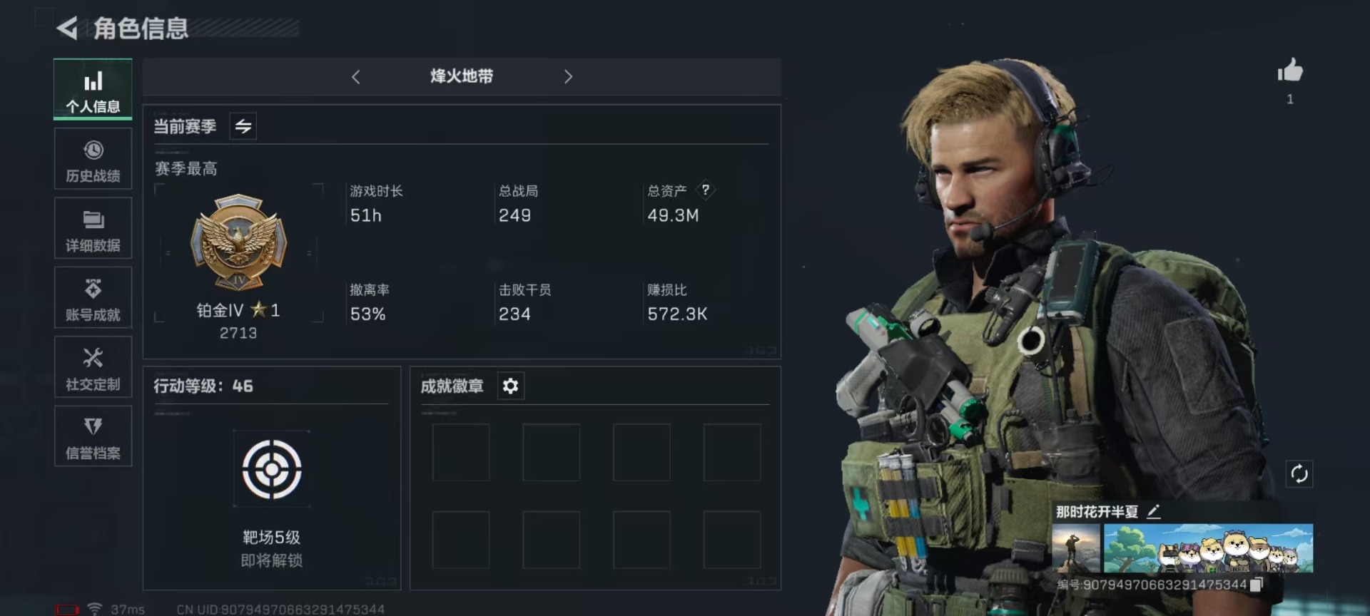 [11521997]总资产:49.3M 8传说枪械 哈夫币:41.122K 可二次 可修改实名 烽火地带段位:铂金 全面战场段位:无段位 传说武器皮肤:M4A1突击步枪-阿米娅,CAR-15突击步枪-阿米娅,复合弓-黑-天际线,AK-12突击步枪-特斯拉线圈,SR-3M紧凑突击步枪-特斯拉线圈,UZI冲锋枪-特斯拉线圈,勇士冲锋枪-能天使-午夜邮差,725双管霰弹枪-送葬人-无题密令 史诗武器皮肤:PKM通用机枪-蝮蛇,PKM通用机枪-荒野求生,SV-98狙击步枪-囚徒