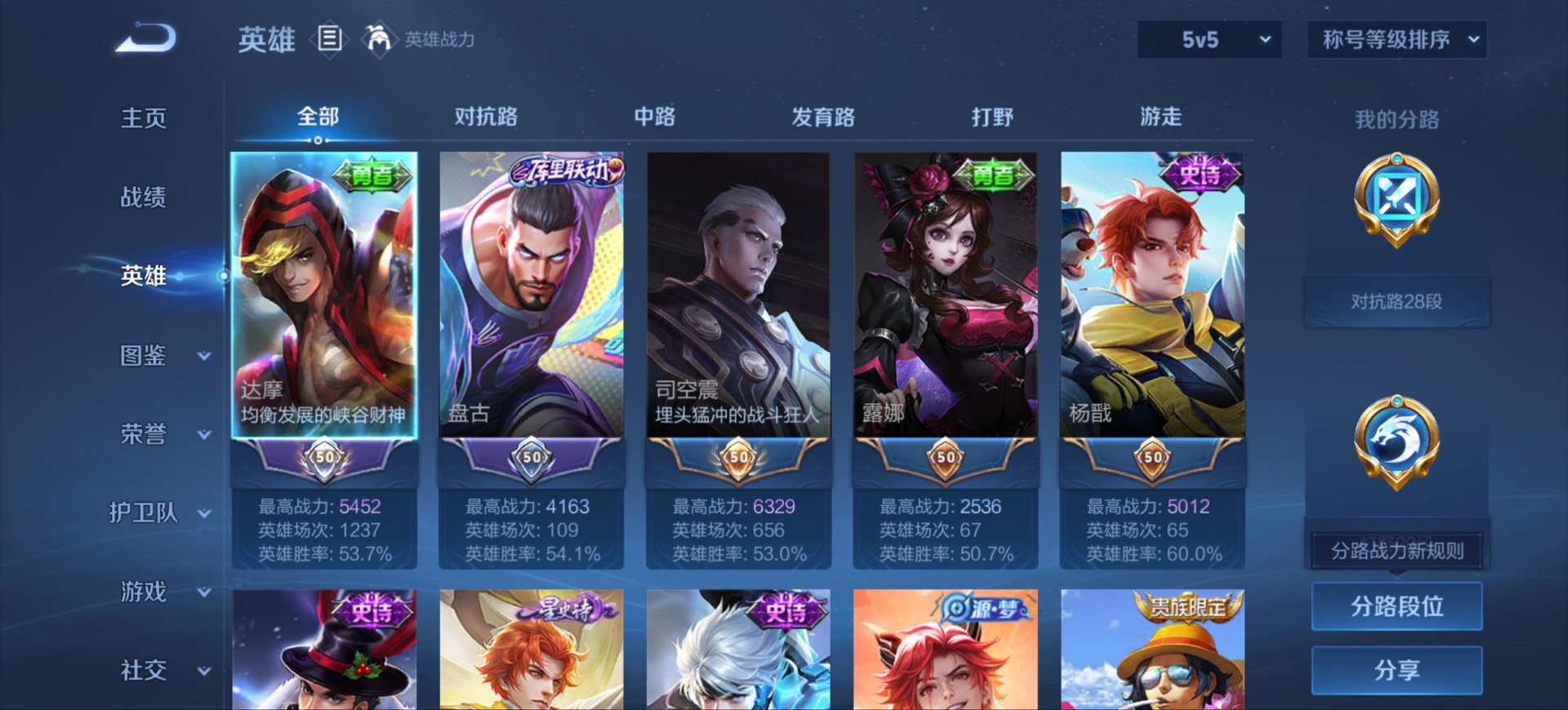 - [11819248]V8 1典藏 19传说 124英雄 298皮肤 可修改实名 优质装备:鸣剑·曳影,黄金狮子座,云鹰飞将(小将军),久胜战神,炽阳神光,一念神魔,末日机甲-孙尚香(绿蚂蚱),地狱火,地狱之眼,无双飞将,燃星之曲,遇见神鼓 传说皮:落雪白狼,幻光神枪 珍宝阁皮:女武神,玩趣恶龙 限定皮:愿照·九州拓(澜年限),愿照·岁时盈(虞姬年限),愿照·众生和(妲己年限),凤求凰(白切鸡),傲雪梅枪,时之彼端,白晶晶,遇见飞天,高山流水,齐天大圣,五谷丰年,梁祝,天狼绘梦者,李小龙,辉光之辰,霸王别姬-虞姬,圣诞老人,真爱至上,纯白花嫁,大圣娶亲,寅虎·御盾(廉颇年限) 史诗皮:鸭鸭历险记-刘禅,苍鳞隐世,器灵·浮梦炉,糖绘人间,化蝶舞,星界战将,龙之律动,藏狐·褐绒,百相守梦-黄忠,紫霞仙子,白龙吟,黄金分割率,特工魅影,千年之狐,永昼,江河有灵,偶像歌手,暗夜猫娘,晚萤,冰冠公主,猫狗日记-孙策,猫狗日记-大乔,乱世虎臣,修罗,女仆咖啡,摇滚巨星,水果甜心,天才门将,星夜王子,心灵骇客,功夫厨神,德古拉伯爵,暗隐猎兽者,幽灵船长,鬼剑武藏,心灵战警,天秀·启明,地狱岩魂,纤云弄巧,繁星吟游(呼啦呼啦),缤纷独角兽,乘风破浪,水晶猎龙者,曙光守护者,箭羽风息,金属风暴,原初追逐者,圣诞狂欢,圣诞恋歌,鹰眼统帅,王者之锤,暗夜贵公子,魅力维加斯,黎明之约,寅虎·御盾,无心,未来纪元-赵云