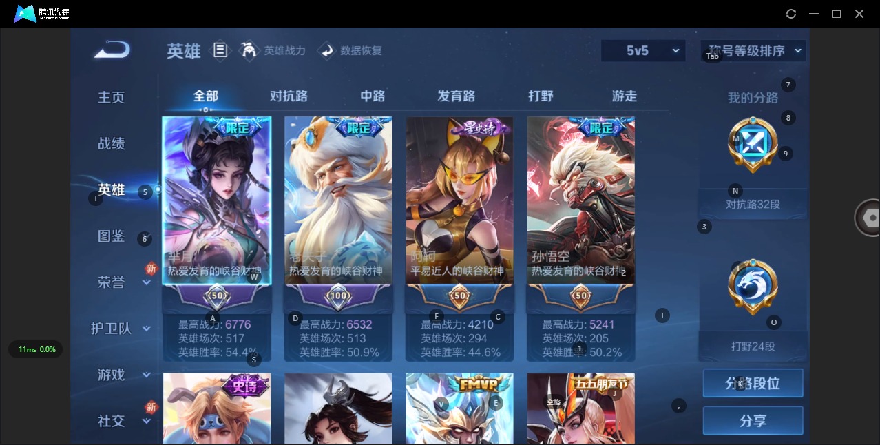 - [11790236]V7 1典藏 2珍品传说 11传说 124英雄 306皮肤 可修改实名 优质装备:九霄神辉(木兰典藏),怪盗基德,大耳狗之梦,冠军飞将,云鹰飞将(小将军),末日机甲-孙尚香(绿蚂蚱),仲夏夜之梦(大飞蛾),浮生妄,澜逐花归海,涂山容容 珍宝阁皮:优雅恋人,蔷薇恋人 限定皮:愿照·九州拓(澜年限),愿照·众生和(妲己年限),逐霄战戟,鸣野蒿,至尊宝,傲雪梅枪,绯月行,神威(电光马子),高山流水,梁祝,御风骁将(吕布年限),龙胆,李小龙,霸王别姬-虞姬,孙行者,猪悟能,大圣娶亲,引擎之心,寅虎·瑞焰(虎皮蛋子),百木心枪,天降福星,山海·玄木吟(马可年限) 史诗皮:鸭鸭历险记-刘禅,器灵·浮梦炉,绮世丹青,化蝶舞,星界战将,龙之律动,雪豹·霜爪,石田雨龙,百相守梦-周瑜,茶境仙,破空之剑,战舞者,蒙犽顽岩魄,蔬乡物语(鲁班七号),百相守梦-百里守约,百相守梦-黄忠,织梦人,紫霞仙子,苍穹之光,电玩小子(小书包),黄金分割率,特工魅影,永昼,魅语,蒙恬荣光圣徽,无限星赏官,匿光破解者,青蛇,偶像歌手,白蛇,晚萤,猫狗日记-孙策,猫狗日记-大乔,乱世虎臣,节奏热浪,修罗,女仆咖啡,摇滚巨星,水果甜心,星夜王子,心灵骇客,功夫厨神,德古拉伯爵,暗隐猎兽者,幽灵船长,鬼剑武藏,心灵战警,乐园奇幻夜,天秀·启明,舞动绿茵,地狱岩魂,繁星吟游(呼啦呼啦),拒霜思,缤纷独角兽,乘风破浪,逐浪之夏,水晶猎龙者,曙光守护者,唤灵魅影,金属风暴,圣诞狂欢,圣诞恋歌,鹰眼统帅,黎明之约,未来纪元-赵云