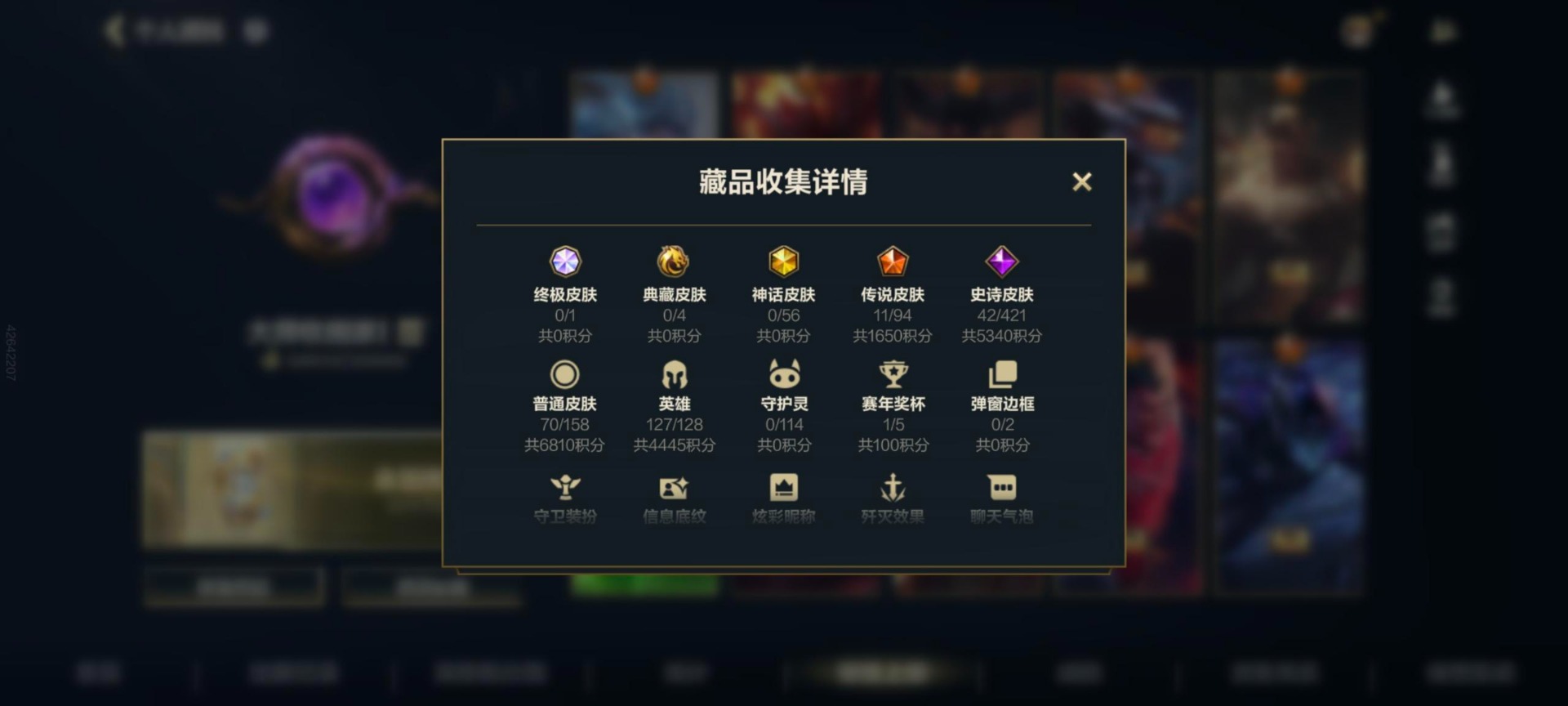 [11522199]可二次 可修改实名 11传说 42史诗 123皮肤 127英雄 翡翠 皮肤:崔斯特-王牌舰长,崔斯特-星域游侠,崔斯特-探戈灵魂,崔斯特-腥红之月,内瑟斯-盗梦者,内瑟斯-单身贵族,内瑟斯-创世魔神,内瑟斯-炼狱魔犬,加里奥-秘旅探索者,加里奥-风执事,加里奥-地狱之门卫士,潘森-未来战士,潘森-钢铁意志,潘森-猎龙勇士,布隆-龙冕御盾,布隆-猛虎,布隆-猎龙勇士,德莱厄斯-福牛守护者,德莱厄斯-热血班长,德莱厄斯-灌篮高手,迦娜-冠翎御风使,迦娜-暴风女神,迦娜-玉剑传说 风仙子,厄运小姐-女帝,厄运小姐-西部牛仔,厄运小姐-电玩女神,雷克顿-源计划:泯灭,雷克顿-鳄霸,雷克顿-泳池派对,奥拉夫-王牌勇将,奥拉夫-猎龙勇士,奥拉夫-铁哥们儿,菲奥娜-绯金丽刃,菲奥娜-泳池派对,菲奥娜-皇家守卫,安妮-福牛守护者,安妮-小红帽,安妮-冰霜烈焰,贾克斯-光明骑士,贾克斯-宗师级钓鱼训练师,贾克斯-武神,蕾欧娜-烧烤女神,蕾欧娜-日蚀骑士,蕾欧娜-泳池派对,德莱文-绯金战斧,德莱文-破败军团,德莱文-德莱德莱,李青-地下拳王,李青-泳池派对,李青-神拳,伊芙琳-绯金魅影,伊芙琳-K/DA ALL OUT,赛娜-梦境灵探,赛娜-西部天使,嘉文四世-王牌上将,嘉文四世-孤胆英豪,蔚-女警官,蔚-炼狱魔女,提莫-小蜜蜂,提莫-熊猫,库奇-冠翎飞行员,库奇-电玩上校,崔丝塔娜-我,羽饰骑士,崔丝塔娜-游击队员,莫甘娜-刀锋女王,莫甘娜-魅惑女巫,奥瑞利安·索尔-灰烬领主,奥瑞利安·索尔-霸天龙神,格雷福斯-绝命机甲,格雷福斯-黑暗骑士,赵信-龙冕先锋,赵信-秘密特工,泰达米尔-光耀之刃,泰达米尔-国王,努努和威朗普-丧尸,努努和威朗普-脏兮兮,艾希-王牌司令,艾希-极地女神,墨菲特-暗星,墨菲特-无畏号,娜美-绯金鲛灵,娜美-玉剑传说 寒潭夭夭,伊泽瑞尔-冰川勇者,维迦-最终BOSS,盖伦-钢铁军团,辛吉德-炼金狂士,卡特琳娜-海贼魅影,艾瑞莉娅-冰霜之刃,韦鲁斯-暗星,锐雯-黎明使者,拉克丝-游侠法师,阿木木-惊悚派对,古拉加斯-飞车暴走族,吉格斯-龙冕神策,菲兹-绒毛