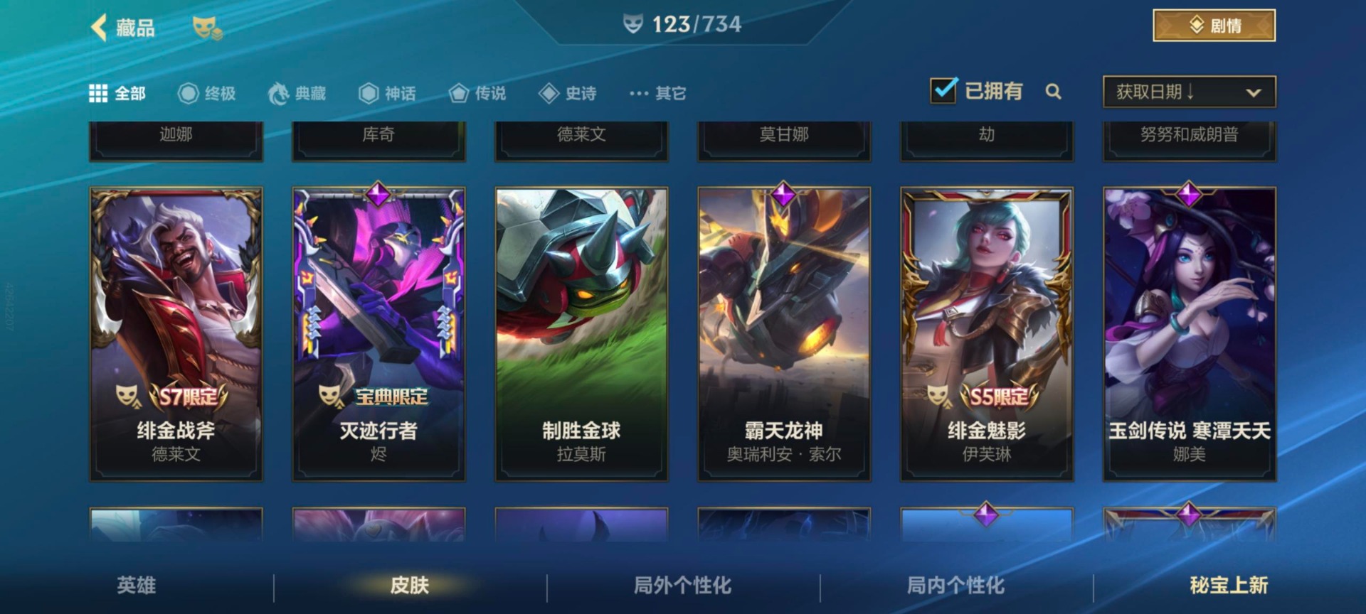 - [12235478]V7 1典藏 5传说 123英雄 235皮肤 可修改实名 优质装备:杀手不太冷,云霓雀翎,淬星耀世,碎云 传说皮:幻光神枪 珍宝阁皮:妄想食味 限定皮:逐霄战戟,鸣野蒿,高山流水,朱雀志(守约年限),孙行者 史诗皮:鸭鸭历险记-刘禅,化蝶舞,龙之律动,雪豹·霜爪,埋骨钱,破空之剑,蒙犽顽岩魄,怒海争锋,决胜骁骑,蔬乡物语(鲁班七号),百相守梦-百里守约,特工魅影,千年之狐,冰冠公主,真我赫兹(百里守约),江河有灵,百解令(蒙犽),高渐离燃音魔法,电玩·爆裂旋风,偶像歌手,猫狗日记-孙策,时之恋人-孙尚香,乱世虎臣,节奏热浪,女仆咖啡,水果甜心,绅士熊喵,天才门将,星夜王子,心灵骇客,功夫厨神,德古拉伯爵,暗隐猎兽者,鬼剑武藏,心灵战警,舞动绿茵,纤云弄巧,拒霜思,缤纷独角兽,乘风破浪,月团寄思,箭羽风息,圣诞恋歌,鹰眼统帅,魅力维加斯,奇遇舞章,未来纪元-赵云