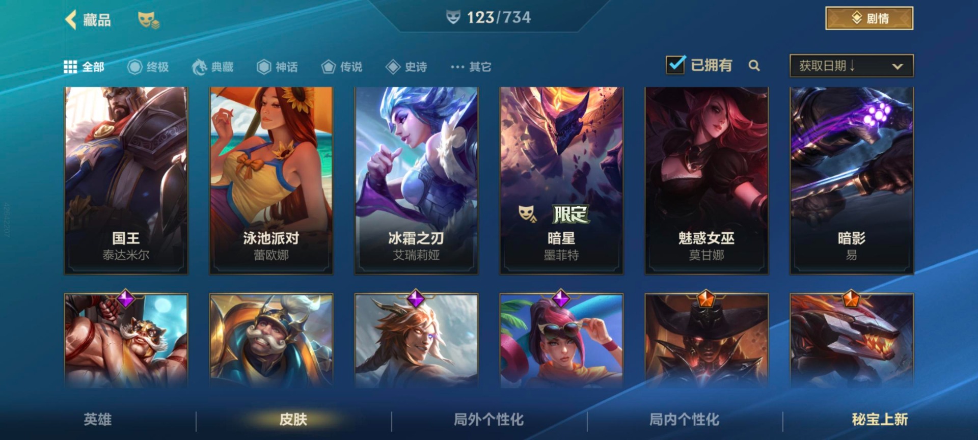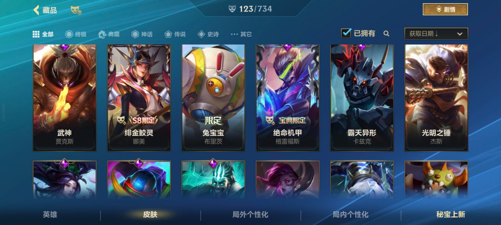 - PX_2086919-安卓Q 【包人脸】 英雄数量:124 皮肤数量:273 贵族等级:贵族V9 【星传说 岁雨灵思 星际治安官 未来机甲 金色仲夏夜】无双限定1 荣耀典藏2 珍品传说1 传说品质23 史诗品质69花合斗 无限飓风号 杀手不太冷 朽木白哉 凤求凰 祈雪灵祝 仲夏夜之梦 音你心动女 猫影幻舞 云霓雀翎 永曜之星 一念神魔 云鹰飞将 时雨天司 淬星耀世 零号赤焰 愿照·九州拓 久胜战神