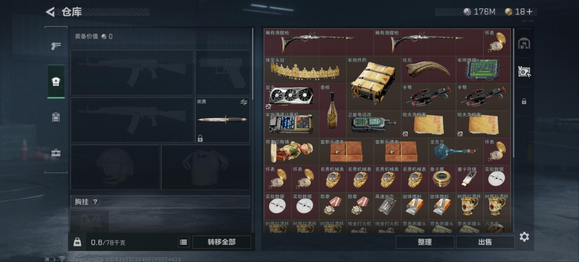[11522431]总资产:203.9M 10传说枪械 哈夫币:176K 进阶安全箱(2×2)9.15号到期 可二次 可修改实名 烽火地带段位:黄金 全面战场段位:无段位 传说武器皮肤:M4A1突击步枪-阿米娅,CAR-15突击步枪-阿米娅,复合弓-黑-天际线,AWM狙击步枪-捞点薯条,腾龙突击步枪-捞点薯条,93R-捞点薯条,AK-12突击步枪-特斯拉线圈,SR-3M紧凑突击步枪-特斯拉线圈,UZI冲锋枪-特斯拉线圈,勇士冲锋枪-能天使-午夜邮差