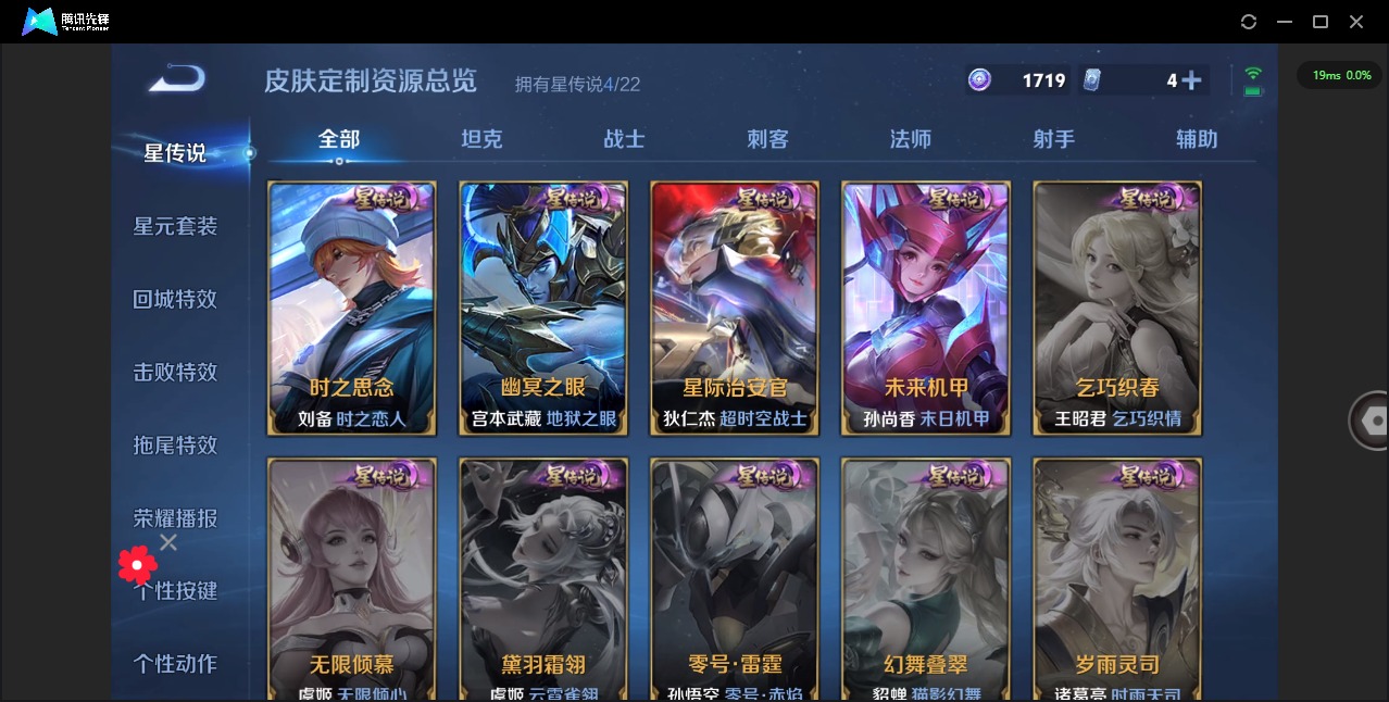 大乔白蛇,大乔猫狗日记,高渐离燃音魔法,大乔乘龙·忆丹青,海诺心动手记,刘邦德古拉伯爵,夏侯惇乘风破浪,阿轲暗夜猫娘,阿轲节奏热浪,哪吒雪上飞焰,铠曙光守护者,曹操幽灵船长,曹操夜都魔契,伽罗箭羽风息,廉颇地狱岩魂,伽罗琥珀纪元,小乔缤纷独角兽,小乔青蛇,孙尚香时之恋人,阿古朵顽趣,孙策猫狗日记,不知火舞魅语,鲁班七号电玩小子,项羽苍穹之光,吕布圣诞狂欢,吕布末日机甲,露娜紫霞仙子,庄周天秀·幻梦,镜真我赫兹,诸葛亮黄金分割率,刘禅天才门将,刘禅绅士熊喵,宫本武藏鬼剑武藏,杨玉环银翎春语,公孙离无限星赏官,兰陵王暗隐猎兽者,貂蝉圣诞恋歌,花木兰水晶猎龙者,夏洛特永昼,李白千年之狐,安琪拉心灵骇客,蒙犽龙鼓争鸣,安琪拉乘龙·聚宝船,安琪拉时之奇旅,西施诗语江南,白起星夜王子,亚瑟心灵战警,嬴政摇滚巨星,桑启奇遇星旅,嬴政暗夜贵公子,莱西奥末日机甲,程咬金功夫厨神,百里玄策原初追逐者,雅典娜冰冠公主,雅典娜黎明之约,韩信白龙吟,百里守约特工魅影,李元芳逐浪之夏,墨子龙骑士,墨子金属风暴,蔡文姬舞动绿茵,瑶遇见神鹿,澜赏金猎手,弈星滕王阁序,娜可露露晚萤,王昭君偶像歌手,嫦娥拒霜思,橘右京修罗