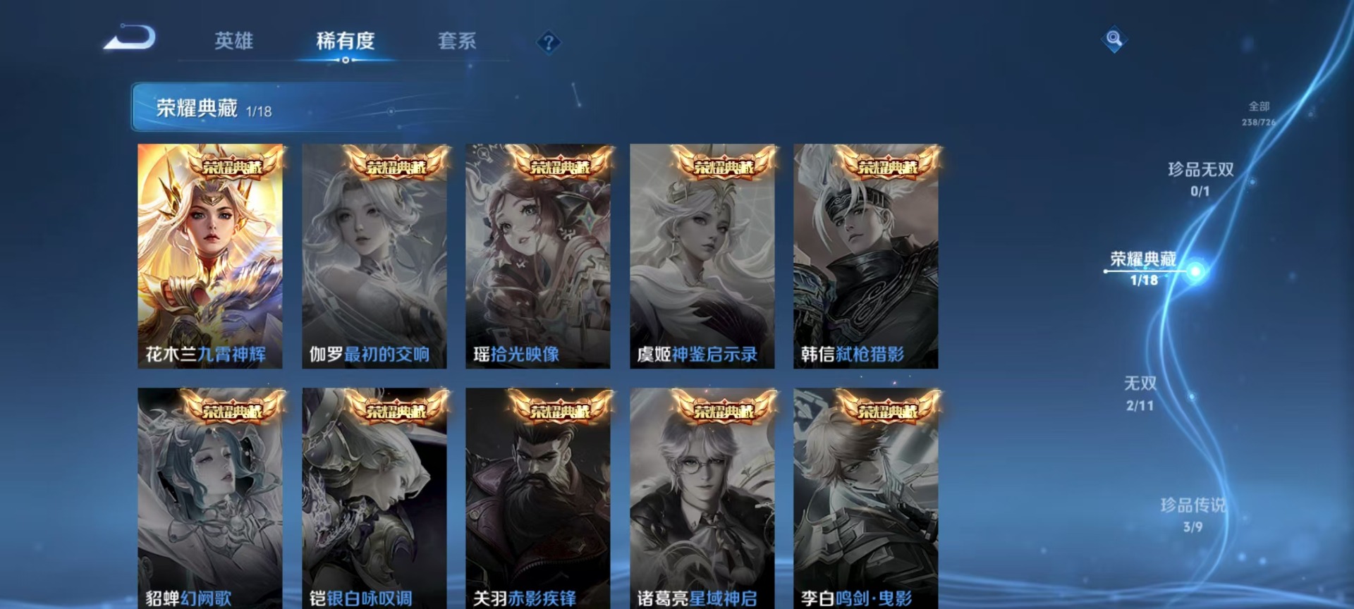 - [11885806]V8 1典藏 2珍品传说 17传说 124英雄 266皮肤 可修改实名 优质装备:鸣剑·曳影,酷洛米之心,大耳狗之梦,黄金狮子座,云鹰飞将(小将军),黄金白羊座,海洋之心,飞鸢探春,挚爱之约,无双飞将,山海·苍雷引(电光曜子),浮生妄,澜逐花归海,涂山容容 传说皮:乘龙·铭钟鼎(赵云年限),九山相柳 珍宝阁皮:万物之道,蔷薇恋人 限定皮:愿照·九州拓(澜年限),鸣野蒿,至尊宝,凤求凰(白切鸡),白晶晶,飞衡(韩信年限),遇见飞天,诗剑行,五谷丰年,李小龙,一生所爱,大圣娶亲,美猴王 史诗皮:鸭鸭历险记-刘禅,器灵·浮梦炉,化蝶舞,龙之律动,百相守梦-周瑜,茶境仙,幻珠鲛人,海诺心动手记,百相守梦-黄忠,织梦人,紫霞仙子,黄金分割率,特工魅影,千年之狐,江河有灵,高渐离燃音魔法,无限星赏官,冰冠公主,青蛇,偶像歌手,白蛇,电玩·爆裂旋风,暗夜猫娘,末日机甲-吕布,猫狗日记-孙策,猫狗日记-大乔,乱世虎臣,水果甜心,绅士熊喵,天才门将,心灵骇客,暗隐猎兽者,幽灵船长,鬼剑武藏,舞动绿茵,纤云弄巧,繁星吟游(呼啦呼啦),缤纷独角兽,乘风破浪,逐浪之夏,水晶猎龙者,曙光守护者,箭羽风息,金属风暴,原初追逐者,圣诞狂欢,圣诞恋歌,鹰眼统帅,无心,玫瑰异探