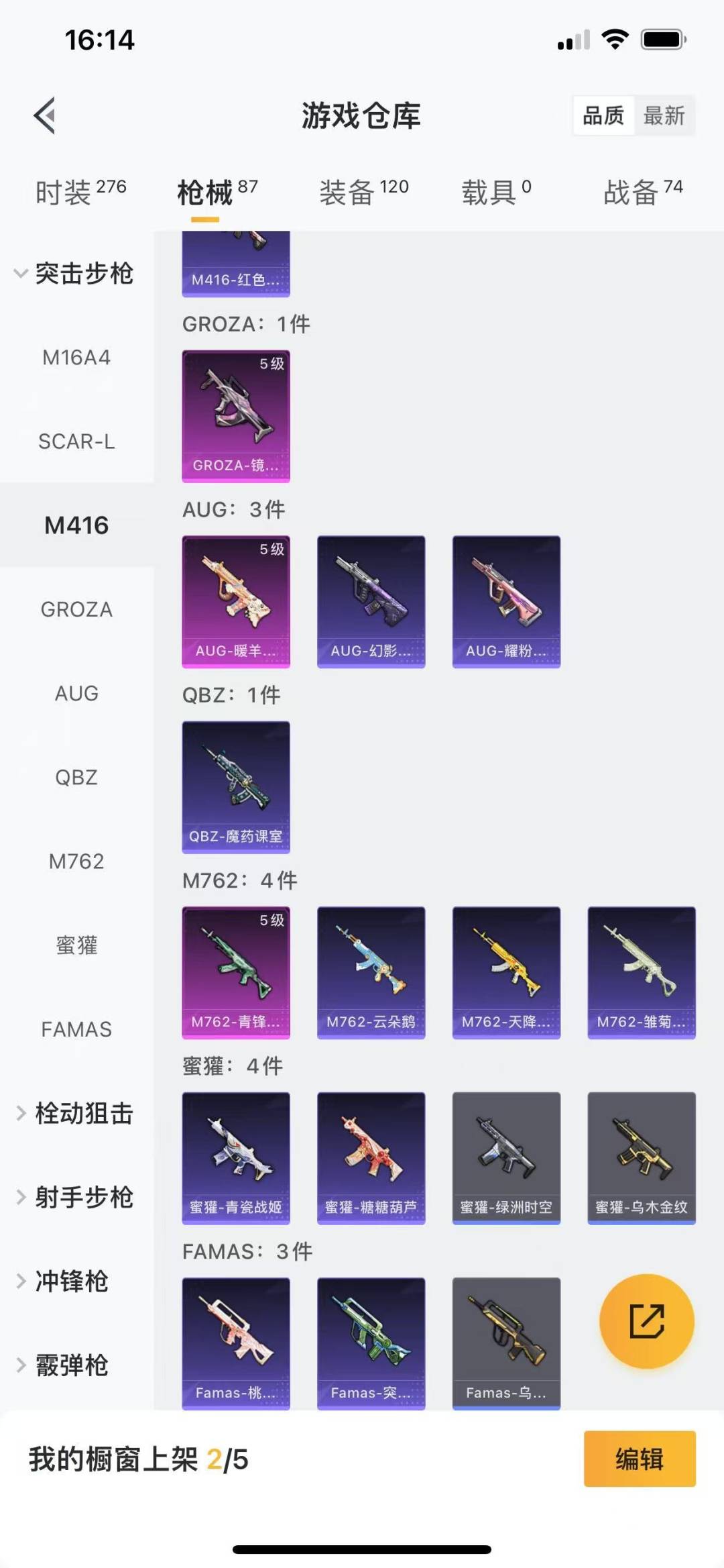 - [11014553]实名: 可修改 时装数: 392 枪械数: 114 战备数: 85 热门装扮: 鹰眼刺客,都市猎人,金丰海韵,时空协奏·心弦 稀有枪皮: SCAR-L-锦绣绵绵,M416电玩时刻,Kar98K-巳巳如意,DP-28-豹影疾电