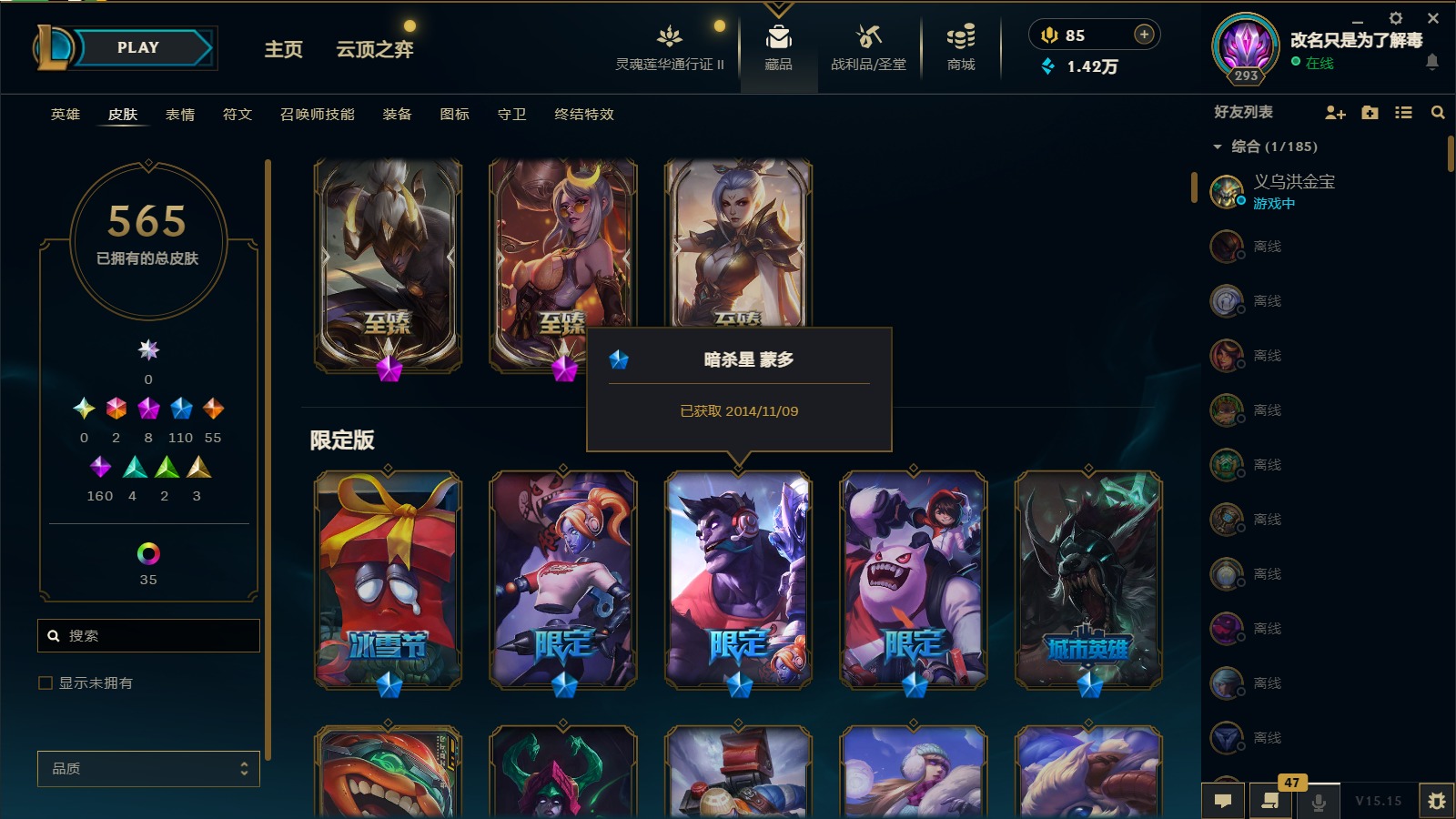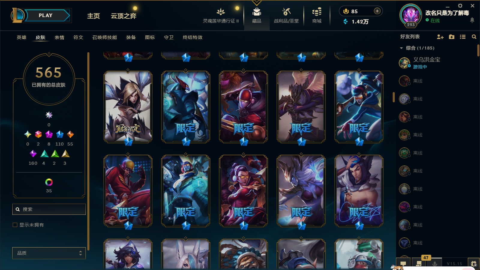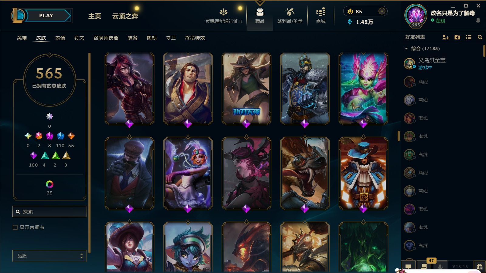 [11523046]可二次 可修改实名 2终极 7神话 2臻彩 111限定 55传说 160史诗 565皮肤 47炫彩 154英雄 皮肤:雷霆领主 奥恩,SSG 霞,甜心之羽 霞,暮星之羽 霞,SSG 洛,晨星之翎 洛,巴德·吟游诗人,冰雪游神 巴德,永恒之森 巴德,SKT T1 卡莉丝塔,腥红之月 卡莉丝塔,糖果之王 艾翁,泳池派对 雷克塞,虚空使者 俄洛伊,腥红之月 锤石,冠军典狱长 锤石,深渊恐惧 锤石,司马懿 仲达,SKT T1 阿兹尔,源代码 娜美,海皇姬 娜美,鲛妮座人 娜美,河水之灵 娜美,胜利之剑 亚托克斯,腥红之月 亚托克斯,狂鲨 亚托克斯,霸天剑魔 亚托克斯,仲裁圣骑 亚托克斯,源计划:裁决 蔚,虎痴之拳 蔚,炼狱魔女 蔚,铁拳执事 蔚,女警官 蔚,霓虹杀拳 蔚,源计划:自由 艾克,时之砂 艾克,爵士 克烈,源计划:阴 劫,SKT T1 劫,西部魔影 卢锡安,源计划:雷 卢锡安,夺命前锋 卢锡安,职业杀手 卢锡安,海牛大大 塔姆,五星大厨 塔姆,圣诞捣蛋鬼 金克丝,丧尸杀手 金克丝,神龙烈焰 金克丝,黑帮狂花 金克丝,银河魔装机神 千珏,SKT T1 烬,腥红之月 烬,西部牛仔 烬,黑帮管家 布隆,布隆·狮心,猛虎 布隆,屠龙勇士 布隆