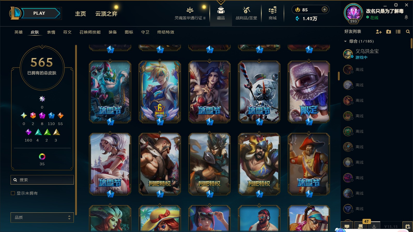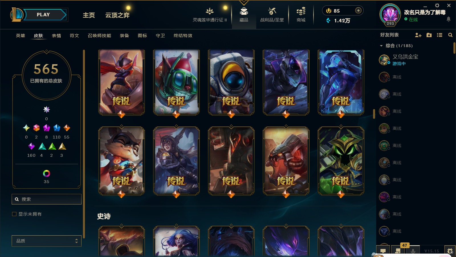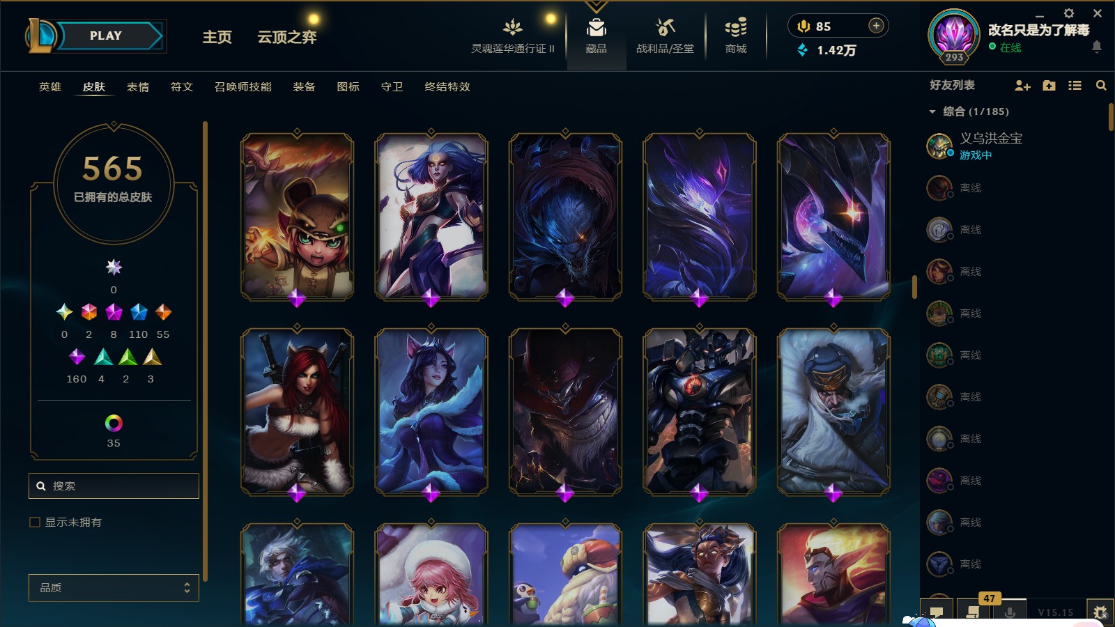 [11523046]可二次 可修改实名 2终极 7神话 2臻彩 111限定 55传说 160史诗 565皮肤 47炫彩 154英雄 皮肤:雷霆领主 奥恩,SSG 霞,甜心之羽 霞,暮星之羽 霞,SSG 洛,晨星之翎 洛,巴德·吟游诗人,冰雪游神 巴德,永恒之森 巴德,SKT T1 卡莉丝塔,腥红之月 卡莉丝塔,糖果之王 艾翁,泳池派对 雷克塞,虚空使者 俄洛伊,腥红之月 锤石,冠军典狱长 锤石,深渊恐惧 锤石,司马懿 仲达,SKT T1 阿兹尔,源代码 娜美,海皇姬 娜美,鲛妮座人 娜美,河水之灵 娜美,胜利之剑 亚托克斯,腥红之月 亚托克斯,狂鲨 亚托克斯,霸天剑魔 亚托克斯,仲裁圣骑 亚托克斯,源计划:裁决 蔚,虎痴之拳 蔚,炼狱魔女 蔚,铁拳执事 蔚,女警官 蔚,霓虹杀拳 蔚,源计划:自由 艾克,时之砂 艾克,爵士 克烈,源计划:阴 劫,SKT T1 劫,西部魔影 卢锡安,源计划:雷 卢锡安,夺命前锋 卢锡安,职业杀手 卢锡安,海牛大大 塔姆,五星大厨 塔姆,圣诞捣蛋鬼 金克丝,丧尸杀手 金克丝,神龙烈焰 金克丝,黑帮狂花 金克丝,银河魔装机神 千珏,SKT T1 烬,腥红之月 烬,西部牛仔 烬,黑帮管家 布隆,布隆·狮心,猛虎 布隆,屠龙勇士 布隆