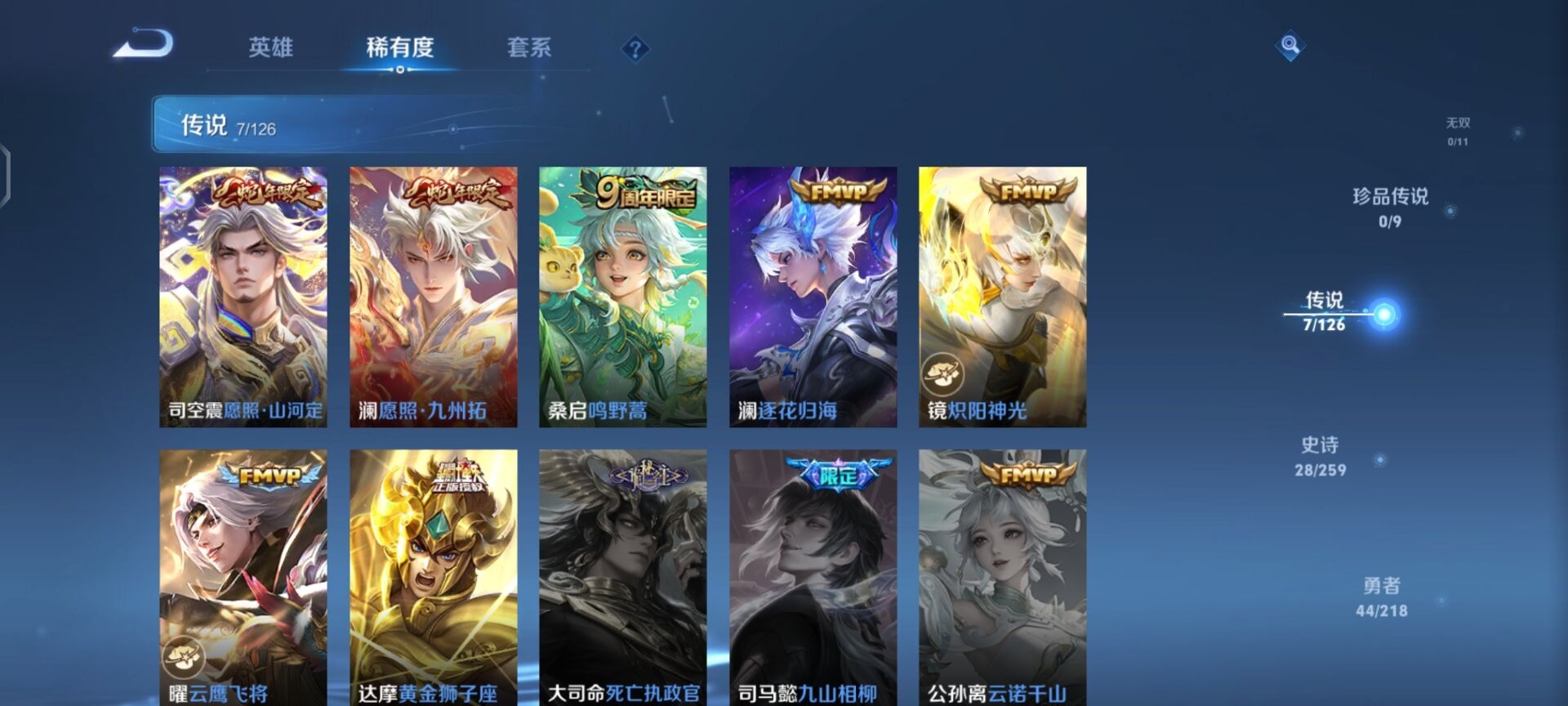 - [11606565]V7 1典藏 7传说 125英雄 243皮肤 可修改实名 优质装备:全息碎影(猴子典藏),地狱之眼,胖达荣荣,澜逐花归海,黄金天蝎座 传说皮:乘龙·问璇玑(孙尚香年限),吕布曦玄引 珍宝阁皮:蔷薇恋人 限定皮:鸣野蒿,白晶晶,飞衡(韩信年限),五谷丰年,李小龙,如梦令-后羿,美猴王,时之奇旅-妲己 史诗皮:鸭鸭历险记-刘禅,化蝶舞,龙之律动,破空之剑,琥珀纪元伽罗,蔬乡物语(鲁班七号),乘龙·聚宝船(安琪拉年限),百相守梦-黄忠,遇见神鹿,紫霞仙子,苍穹之光,黄金分割率,特工魅影,千年之狐,江河有灵,百解令(蒙犽),高渐离燃音魔法,蒙恬荣光圣徽,冰冠公主,青蛇,偶像歌手,电玩·爆裂旋风,末日机甲-吕布,猫狗日记-大乔,节奏热浪,修罗,摇滚巨星,水果甜心,心灵骇客,功夫厨神,德古拉伯爵,暗隐猎兽者,幽灵船长,鬼剑武藏,暗渊魔法,纤云弄巧,拒霜思,缤纷独角兽,乘风破浪,逐浪之夏,曙光守护者,金属风暴,原初追逐者,圣诞狂欢,圣诞恋歌,鹰眼统帅,暗夜贵公子,魅力维加斯,无心,未来纪元-赵云