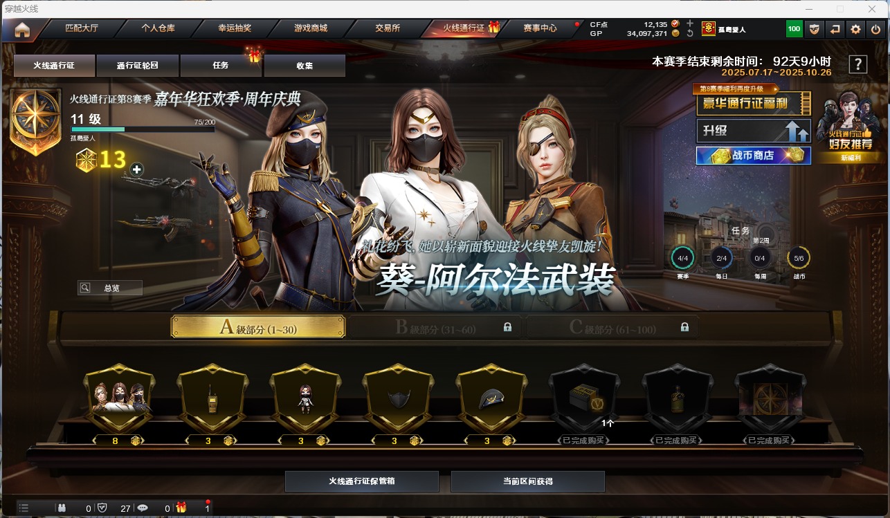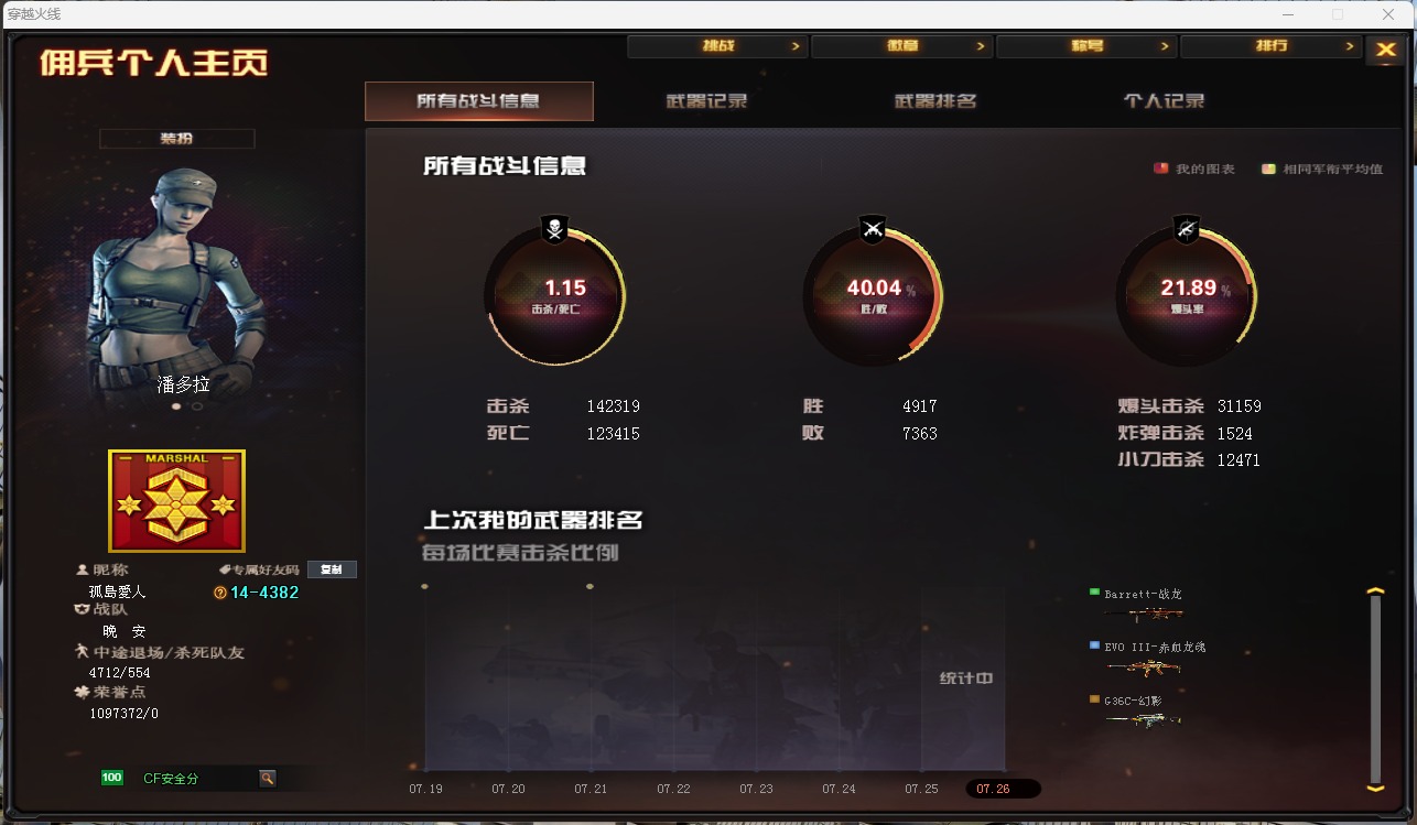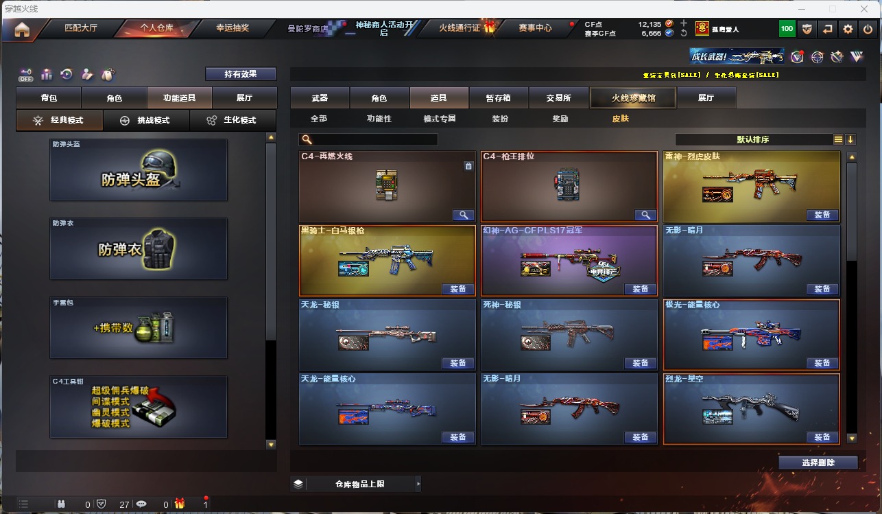 - [12123168]5橙皮 4紫皮 21皮肤 19英雄 50卡面 345已用源晶 青铜 优质装备:狂徒-盖亚的复仇,幻影-侦察力量,幻影-破败军械,冥驹-离子武器,威龙之刃,堕天遗武 仪式匕首,判官-天界神兵2.0 冲锋枪皮肤:蜂刺-混沌序曲 狙击枪皮肤:莽侠-RGX 11z Pro 3.0