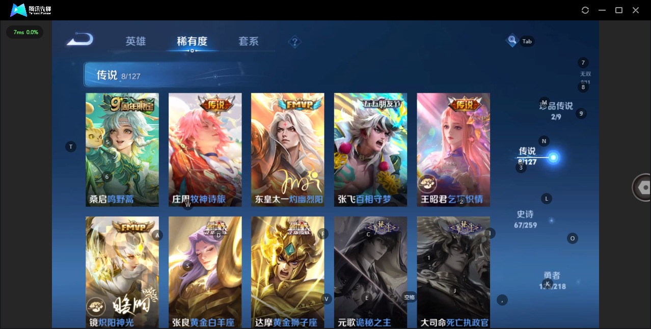 [11523574]V7 2珍品传说 8传说 126英雄 274皮肤 典藏英雄武则天 可修改实名 优质装备:怪盗基德,黄金狮子座,黄金白羊座,炽阳神光,乞巧织情,百相守梦(张飞),灼幽烈阳,牧神诗旅 珍品传说:兔狲·蓬尾 珍宝阁皮:万物之道,优雅恋人 限定皮:鸣野蒿,玄嵩(庄周年限),山海·碧波行(瑶年限),高山流水,降魔,五谷丰年,虎魄,奔雷神使(牛魔年限),云端筑梦师,山海·玄木吟(马可年限) 史诗皮:鸭鸭历险记-刘禅,化蝶舞,星界战将,龙之律动,小牛鸭,百相守梦-周瑜,茶境仙,蒙犽顽岩魄,百相守梦-百里守约,百相守梦-黄忠,特工魅影,电玩·爆裂旋风,江河有灵,百解令(蒙犽),蒙恬荣光圣徽,冰冠公主,末日机甲-吕布,猫狗日记-大乔,时之恋人-孙尚香,乱世虎臣,节奏热浪,女仆咖啡,水果甜心,绅士熊喵,天才门将,星夜王子,德古拉伯爵,幽灵船长,鬼剑武藏,心灵战警,乐园奇幻夜,天秀·启明,地狱岩魂,纤云弄巧,拒霜思,缤纷独角兽,金属风暴,原初追逐者,圣诞狂欢,圣诞恋歌,鹰眼统帅,暗夜贵公子,魅力维加斯,黎明之约,无心,未来纪元-赵云