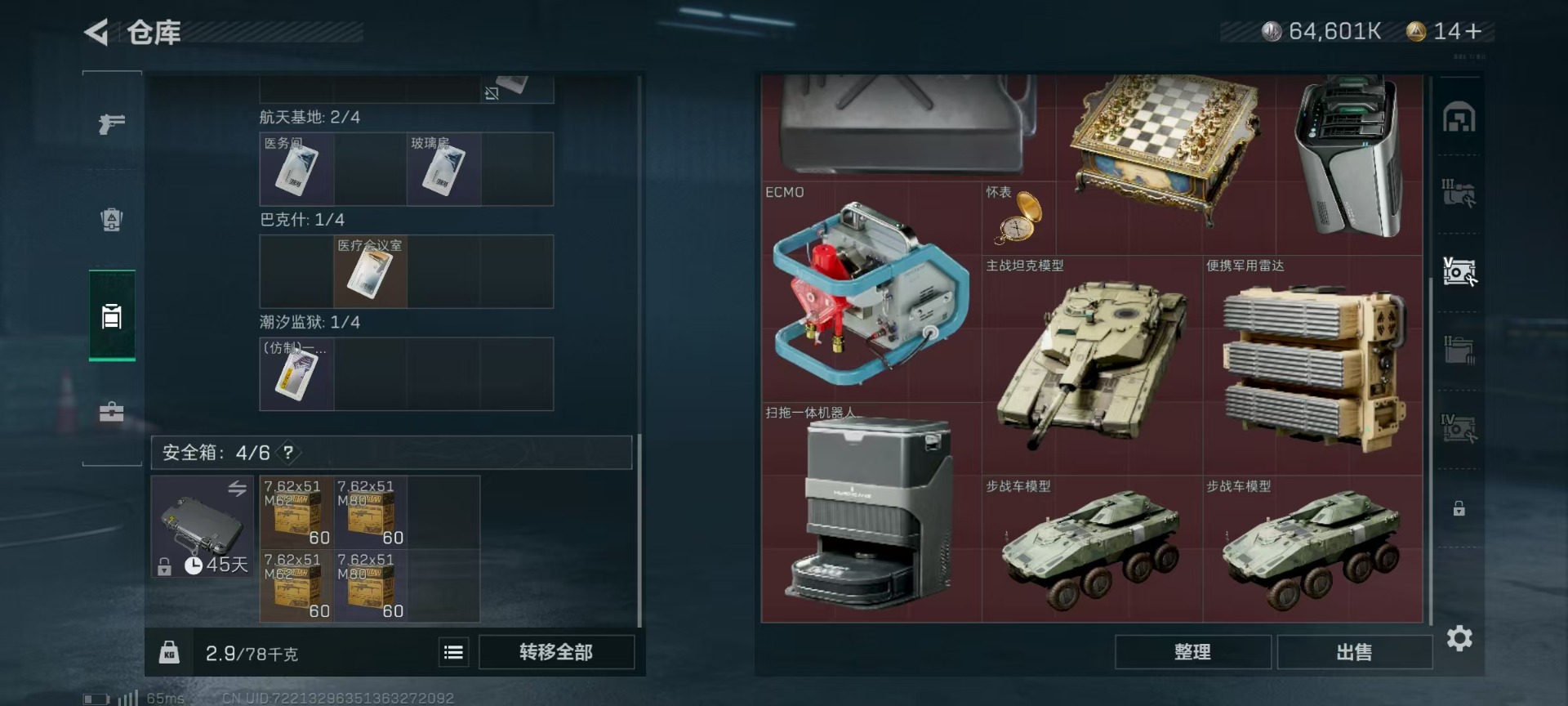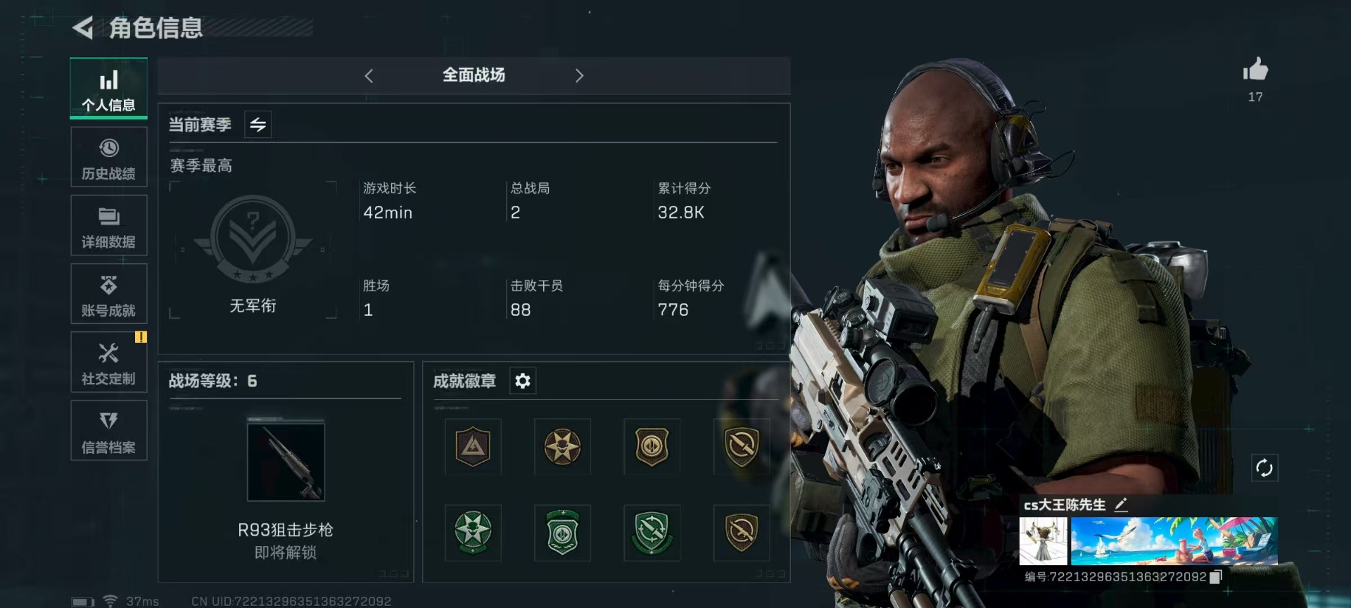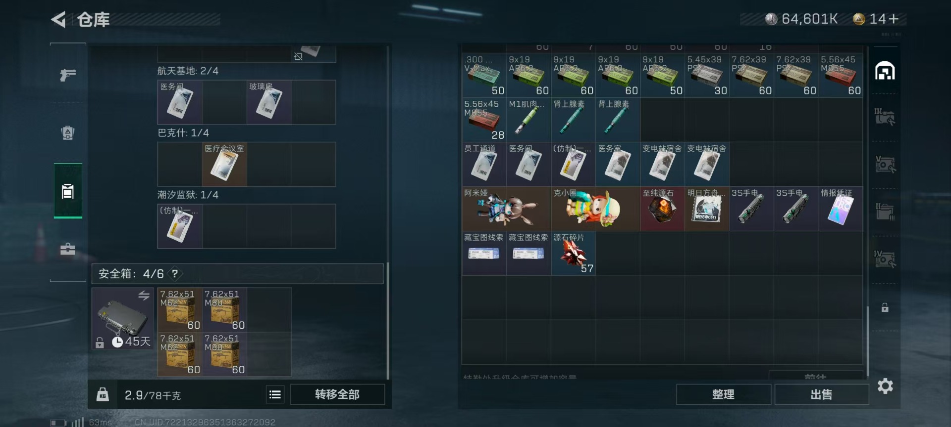 - [12088546]总资产:206.3M 1干员外观 5传说枪械 哈夫币:42.527K 顶级安全箱(3×3)9.15号到期 可二次 可修改实名 优质装备:顶级安全箱(3x3) 烽火地带段位:钻石 全面战场段位:列兵 传说武器皮肤:CAR-15突击步枪-阿米娅,复合弓-黑-天际线,勇士冲锋枪-能天使-午夜邮差,725双管霰弹枪-送葬人-无题密令,M4A1突击步枪-蚀金玫瑰 干员外观:红狼-蚀金玫瑰