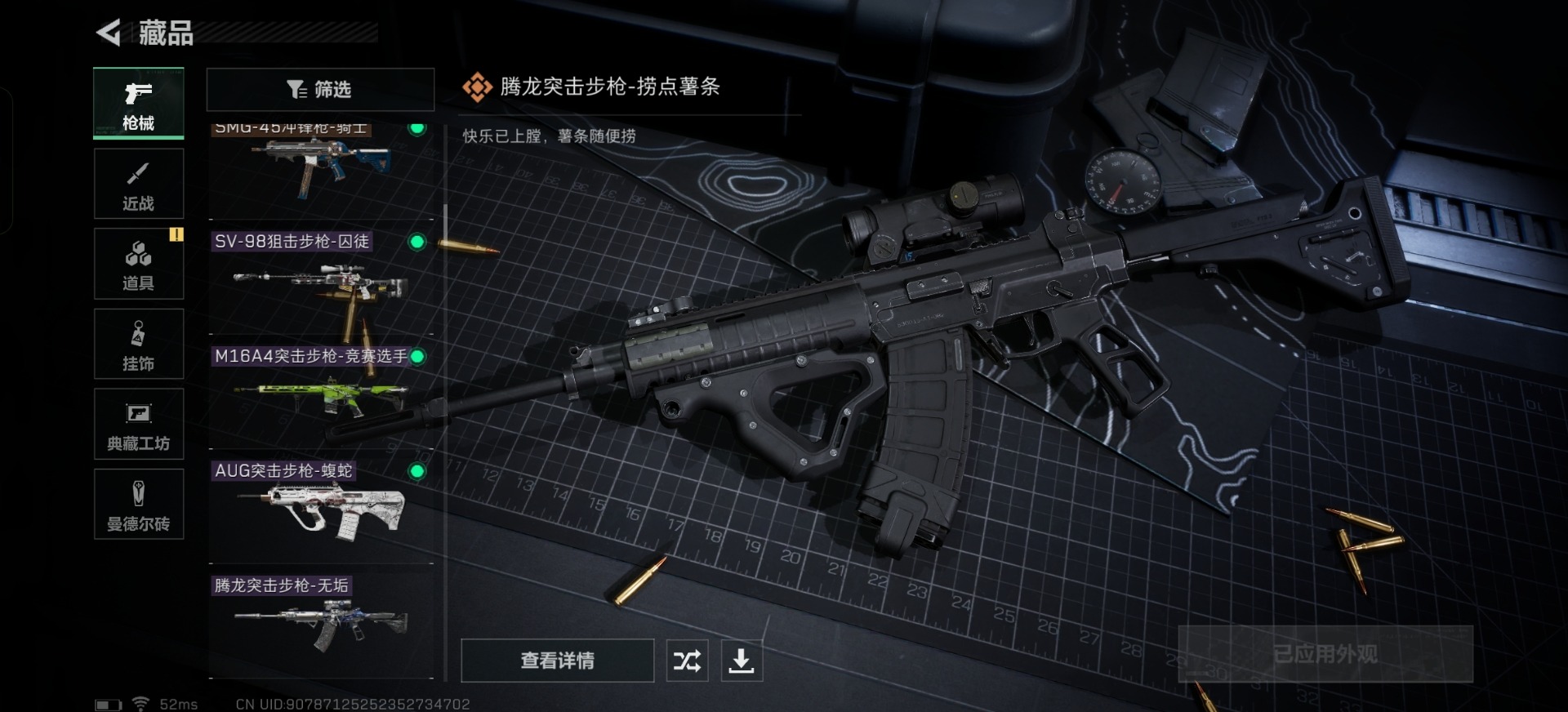 [11523668]总资产:34.3M 1干员外观 2近战传说 18传说枪械 哈夫币:2.036K 高级安全箱(2×3)9.15号到期 可二次 可修改实名 优质装备:近战-黑海,近战-北极星 烽火地带段位:铂金 全面战场段位:无段位 传说武器皮肤:SMG45冲锋枪-骑士,M4A1突击步枪-阿米娅,CAR-15突击步枪-阿米娅,复合弓-黑-天际线,AWM狙击步枪-捞点薯条,QCQ171冲锋枪-北极星,腾龙突击步枪-捞点薯条,93R-捞点薯条,AK-12突击步枪-特斯拉线圈,SR-3M紧凑突击步枪-特斯拉线圈,UZI冲锋枪-特斯拉线圈,勇士冲锋枪-能天使-午夜邮差,725双管霰弹枪-送葬人-无题密令,K437突击步枪-北极星,MP5冲锋枪-黑海,QJB201轻机枪-黑海 史诗武器皮肤:AUG突击步枪-蝮蛇,M16A4突击步枪-竞赛选手,PKM通用机枪-荒野求生,SR-3M紧凑突击步枪-荒野求生,SV-98狙击步枪-林中猎手,SVD狙击步枪-荒野求生,SV-98狙击步枪-囚徒,腾龙突击步枪-无垢,QBZ95-1突击步枪-曙光 干员外观:红狼-蚀金玫瑰
