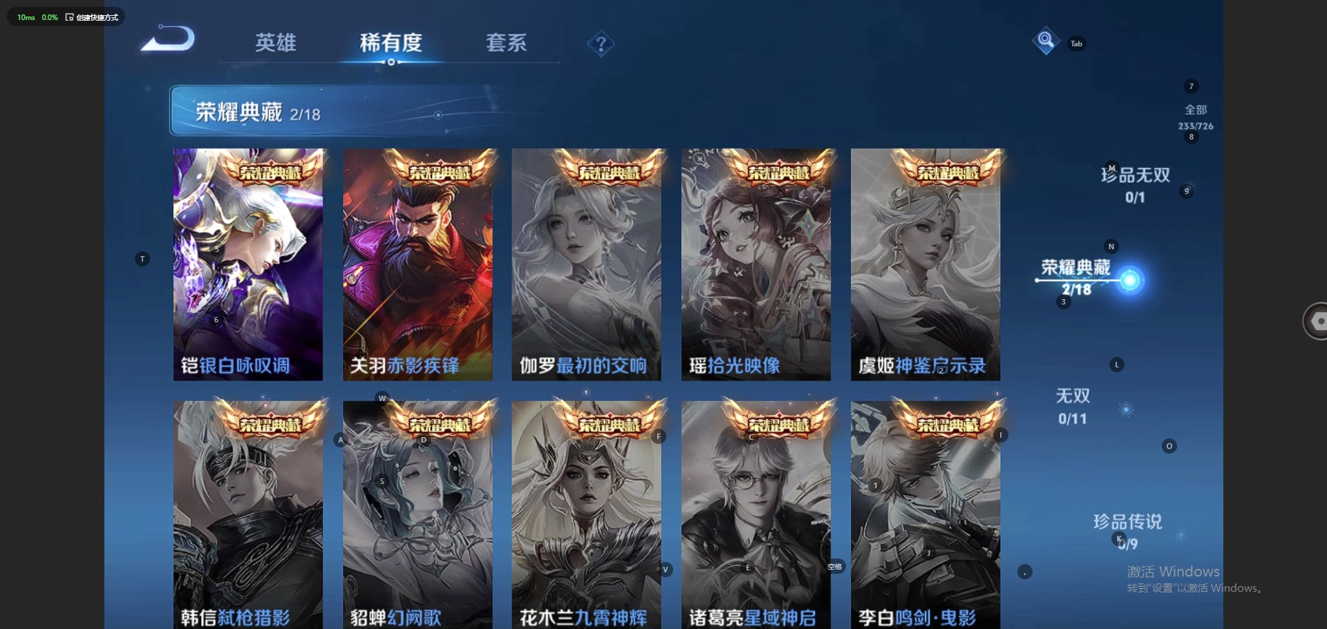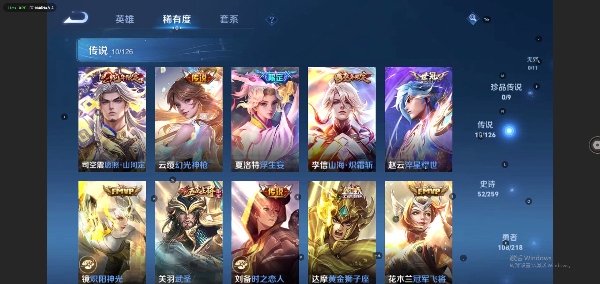 - [11818961]V6 5传说 122英雄 203皮肤 可修改实名 优质装备:一念神魔,胖达荣荣,李逍遥 传说皮:幻光神枪 珍宝阁皮:胡桃夹子,蔷薇恋人 限定皮:鸣野蒿,至尊宝,时之彼端,遇见飞天,高山流水,梁祝,李小龙,孙行者,猪悟能,大圣娶亲 史诗皮:千年之狐,蒙恬荣光圣徽,偶像歌手,龙骑士(小龙虾),晚萤,末日机甲-吕布,猫狗日记-孙策,节奏热浪,修罗,女仆咖啡,水果甜心,功夫厨神,德古拉伯爵,暗隐猎兽者,鬼剑武藏,舞动绿茵,地狱岩魂,纤云弄巧,拒霜思,缤纷独角兽,乘风破浪,水晶猎龙者,曙光守护者,箭羽风息,金属风暴,原初追逐者,圣诞狂欢,鹰眼统帅,魅力维加斯,黎明之约,未来纪元-赵云