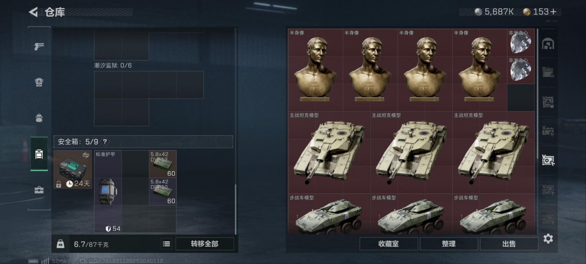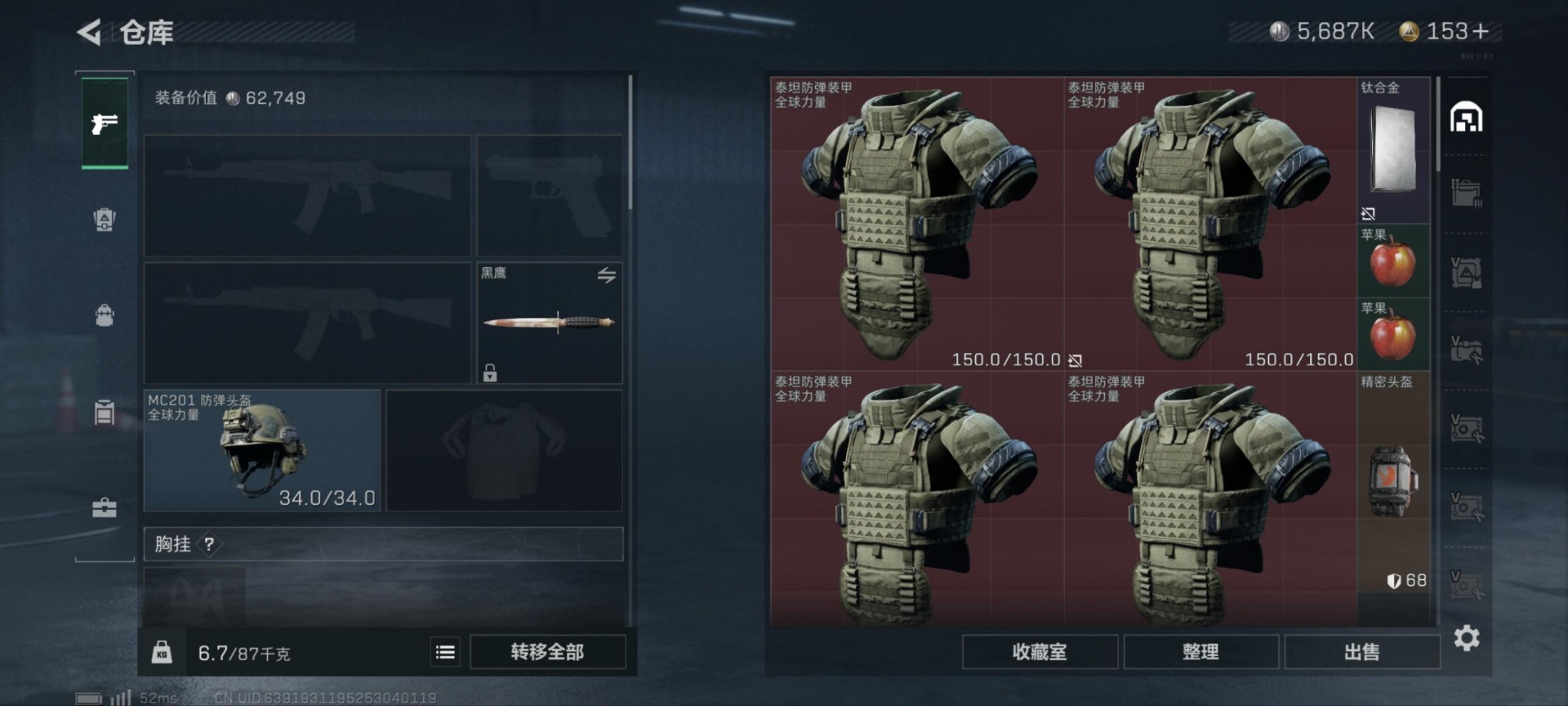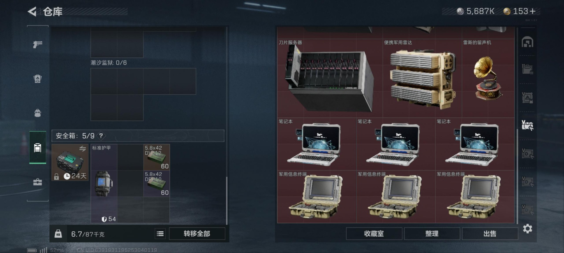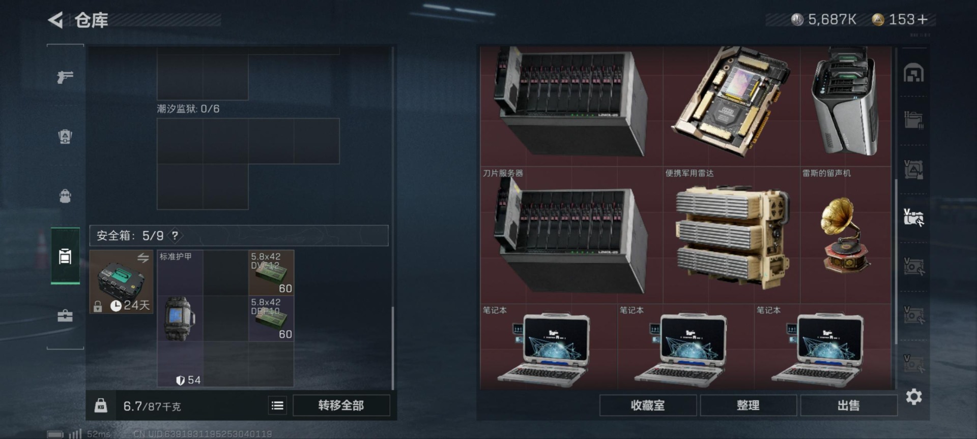 [11523809]总资产:325.4M 1干员外观 10传说枪械 哈夫币:5.687K 顶级安全箱(3×3)9.15号到期 可二次 可修改实名 优质装备:顶级安全箱(3x3) 烽火地带段位:三角洲巅峰 全面战场段位:列兵 传说武器皮肤:M4A1突击步枪-阿米娅,CAR-15突击步枪-阿米娅,复合弓-黑-天际线,AWM狙击步枪-捞点薯条,腾龙突击步枪-捞点薯条,93R-捞点薯条,AK-12突击步枪-特斯拉线圈,SR-3M紧凑突击步枪-特斯拉线圈,UZI冲锋枪-特斯拉线圈,勇士冲锋枪-能天使-午夜邮差 史诗武器皮肤:M16A4突击步枪-竞赛选手,SG552突击步枪-深海恐惧,AKM突击步枪-林中猎手,M1014霰弹枪-林中猎手,SV-98狙击步枪-林中猎手,PTR-32突击步枪-英雄,M250通用机枪-囚徒,SCAR-H战斗步枪-囚徒,Vector冲锋枪-阿萨拉文明 干员外观:露娜-黑·天际线