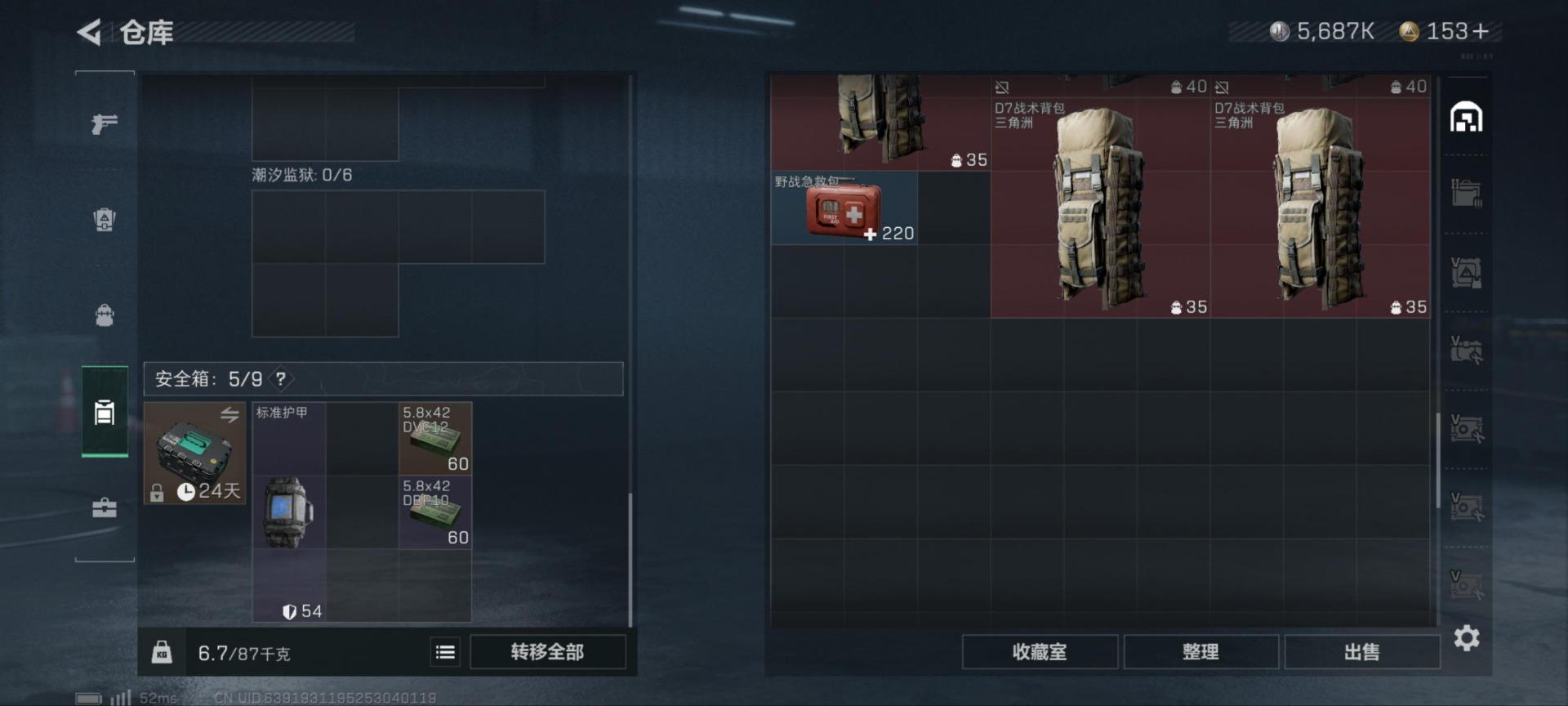 - [11688475]总资产:147.9M 3传说枪械 哈夫币:50.820K 进阶安全箱(2×2)9.15号到期 可二次 可修改实名 烽火地带段位:黄金 全面战场段位:无段位 传说武器皮肤:CAR-15突击步枪-阿米娅,勇士冲锋枪-能天使-午夜邮差,复合弓-黑-天际线 史诗武器皮肤:AKM突击步枪-林中猎手,M1014霰弹枪-林中猎手,SV-98狙击步枪-林中猎手,沙漠之鹰-曙光,SVD狙击步枪-阿萨拉工艺