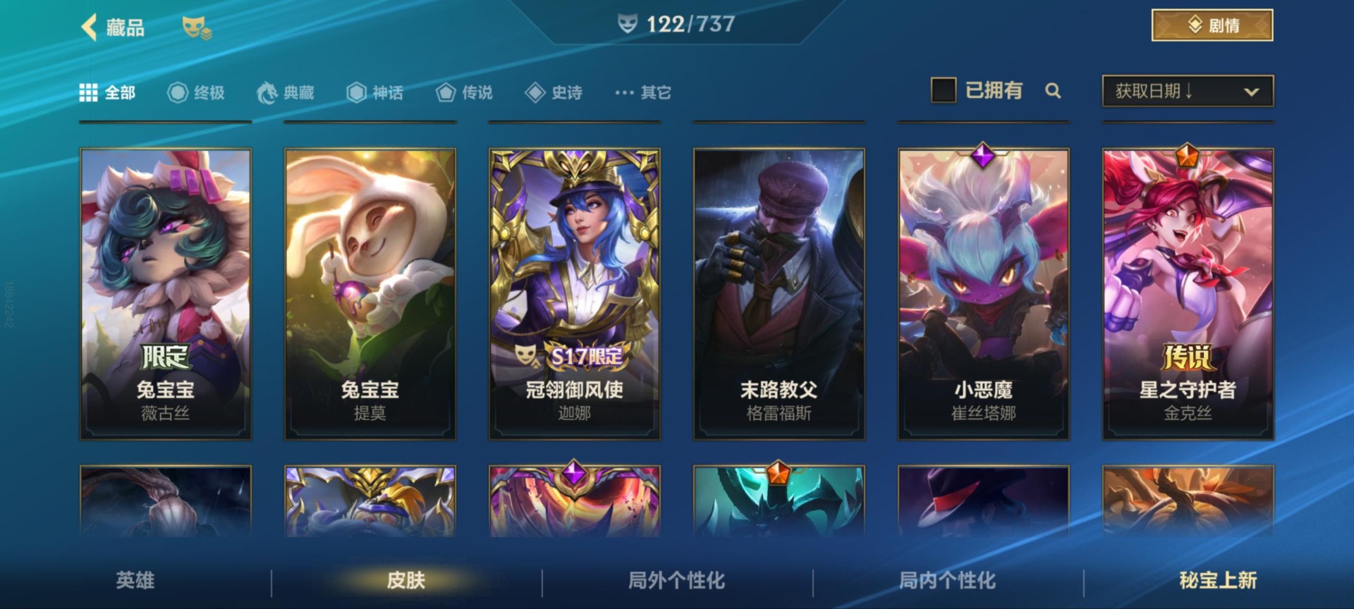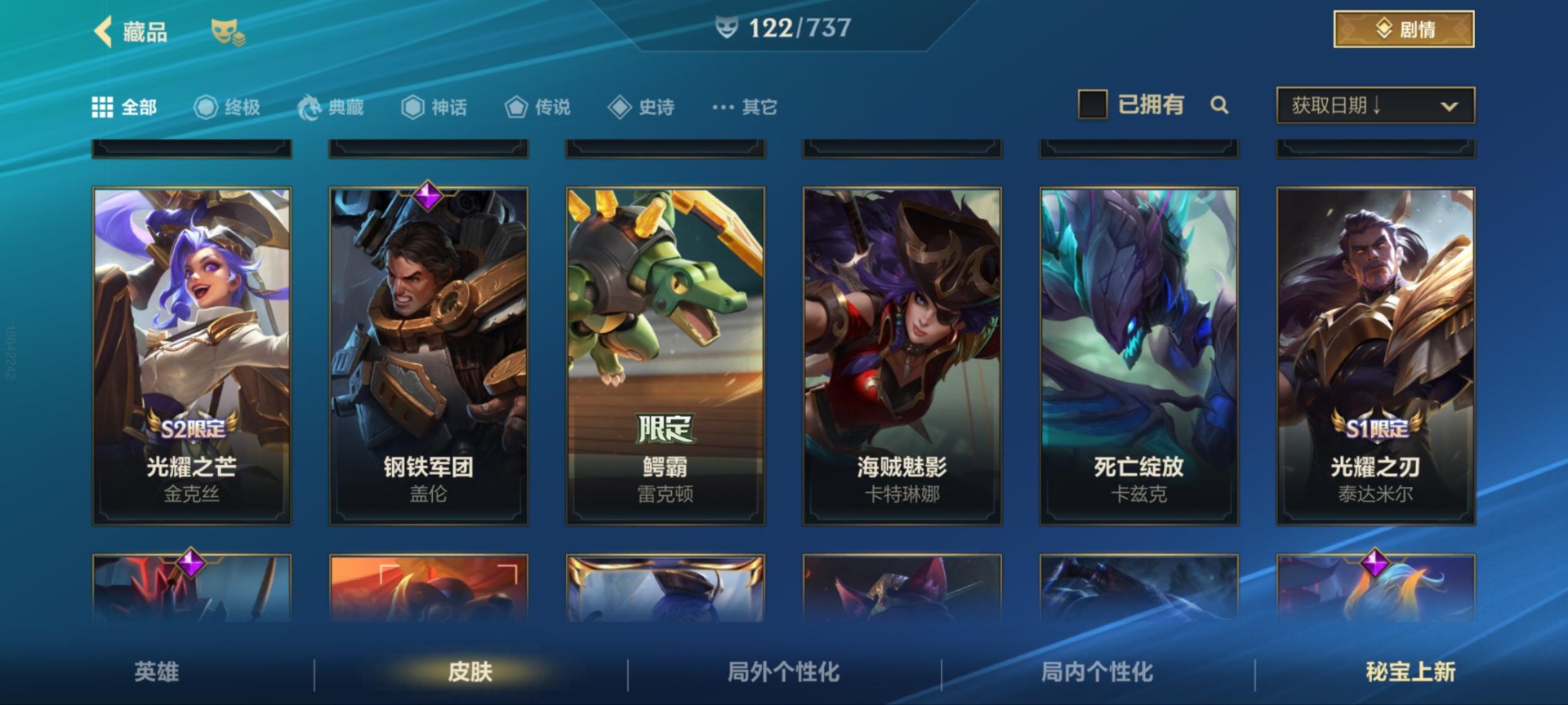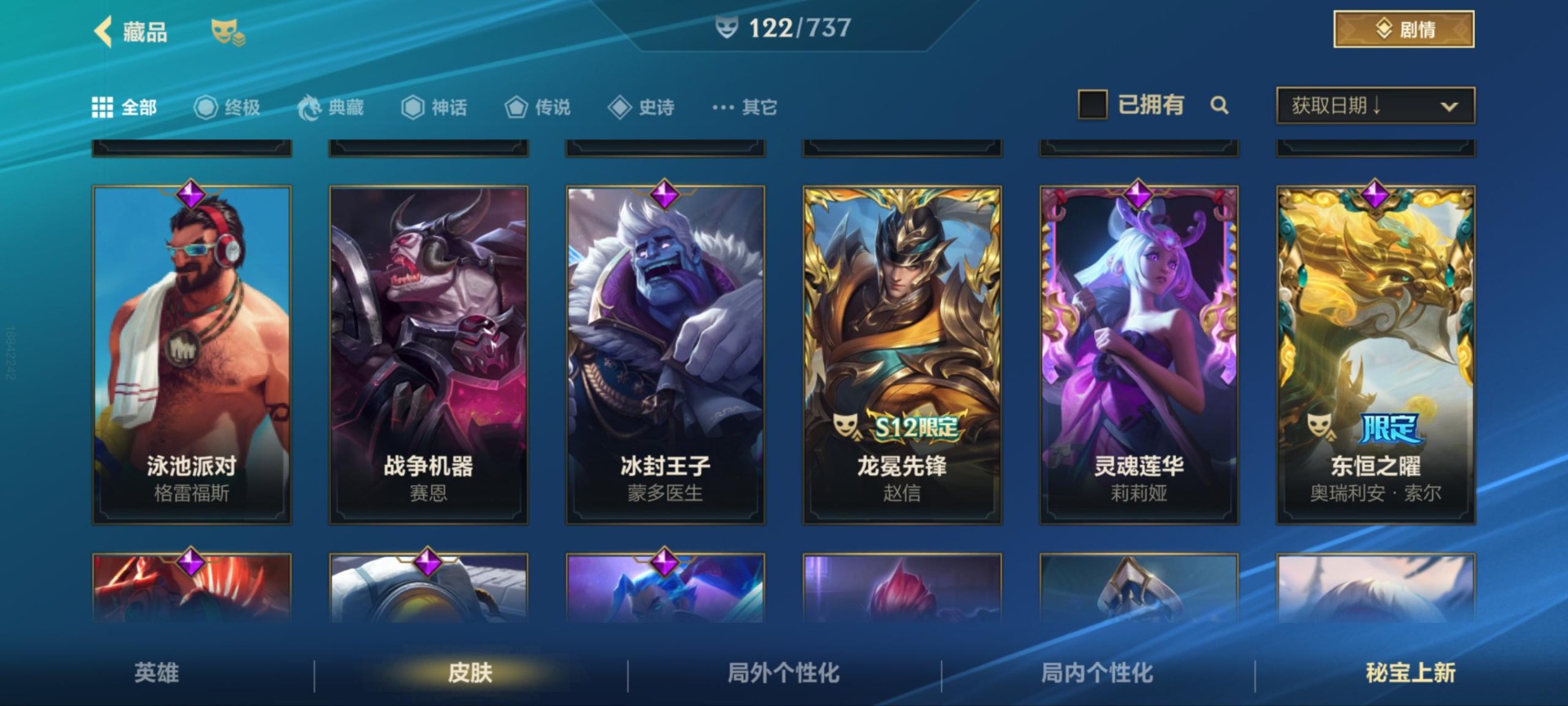 - PX_2100239-实名: 可修改 贵族等级: V5 英雄数: 110 皮肤数: 74 传说皮: 一念神魔,澜逐花归海 限定皮: 五谷丰年