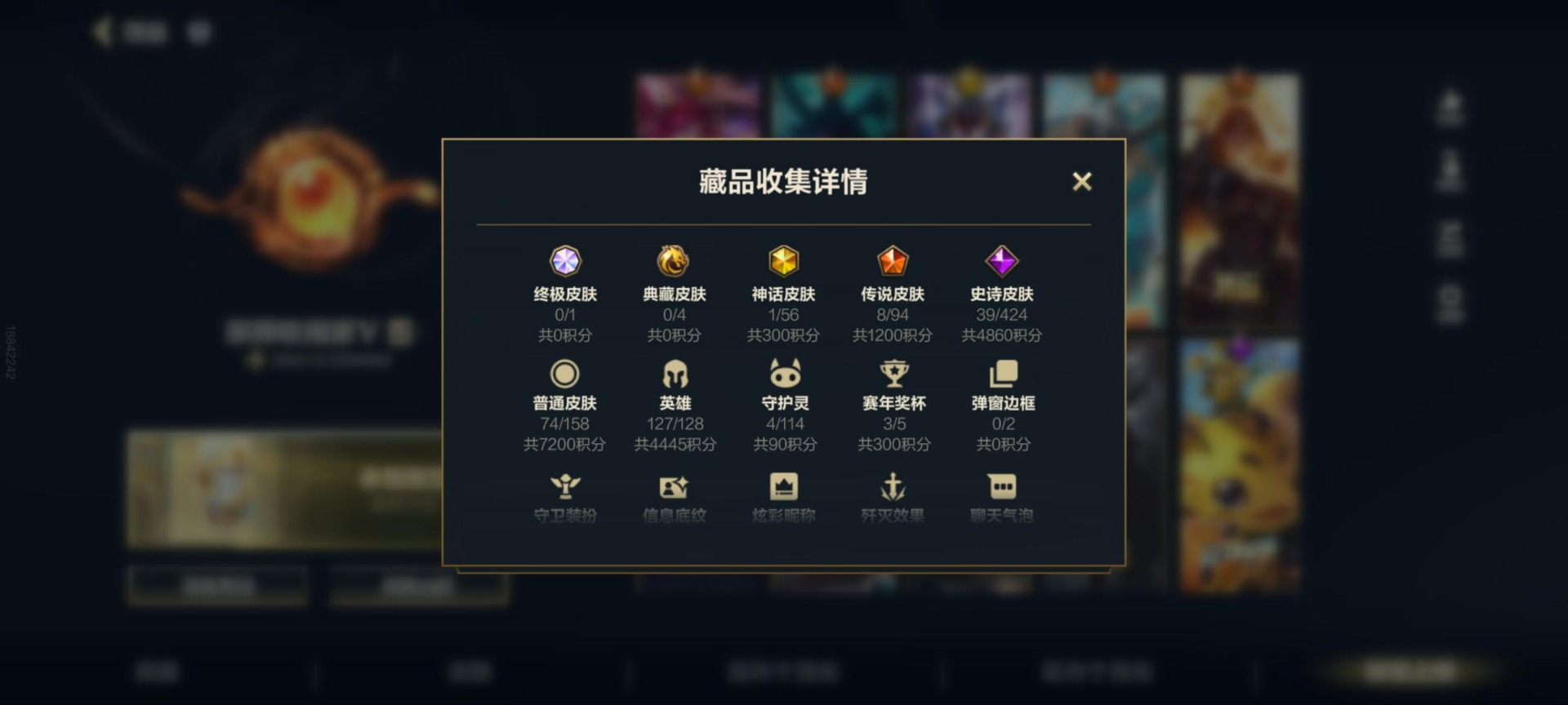 [11523836]可二次 可修改实名 1神话 8传说 39史诗 122皮肤 127英雄 翡翠 皮肤:提莫-小蜜蜂,提莫-灵魂莲华,提莫-熊猫,提莫-兔宝宝,蕾欧娜-烧烤女神,蕾欧娜-日蚀骑士,蕾欧娜-源计划:山,奥拉夫-王牌勇将,奥拉夫-光明哨兵,奥拉夫-铁哥们儿,格雷福斯-黑暗骑士,格雷福斯-泳池派对,格雷福斯-末路教父,德莱厄斯-福牛守护者,德莱厄斯-热血班长,德莱厄斯-神王,阿木木-小小骑士,阿木木-殇之机器人,阿木木-惊悚派对,嘉文四世-王牌上将,嘉文四世-福牛守护者,嘉文四世-孤胆英豪,蔚-双城之战,蔚-女警官,蔚-铁拳执事,金克丝-双城之战,金克丝-星之守护者,金克丝-光耀之芒,亚索-战场之王,亚索-西部牛仔,亚索-源计划:风,崔斯特-王牌舰长,崔斯特-探戈灵魂,阿利斯塔-福牛守护者,阿利斯塔-哞利斯塔,安妮-福牛守护者,安妮-冰霜烈焰,库奇-冠翎飞行员,库奇-海牛骑手,希瓦娜-银河魔装机神,希瓦娜-冰霜亚龙