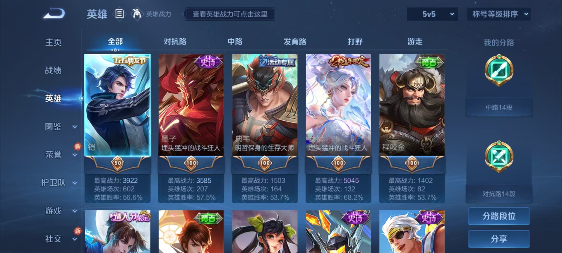 - [12024686]V7 1典藏 2传说 125英雄 278皮肤 可修改实名 优质装备:鸣剑·曳影 珍宝阁皮:妄想食味,蔷薇恋人,女武神,玩趣恶龙 限定皮:鸣野蒿,凤求凰(白切鸡),遇见飞天,高山流水,五谷丰年,游园惊梦,梁祝,逐梦之翼,逐梦之星,李小龙,猪悟能,引擎之心,蜜橘之夏,热情桑巴,美猴王,天降福星 史诗皮:星界战将,石田雨龙,戍鼓铭心,紫霞仙子,黄金分割率,特工魅影,千年之狐,江河有灵,百解令(蒙犽),蒙恬荣光圣徽,冰冠公主,偶像歌手,末日机甲-吕布,猫狗日记-孙策,乱世虎臣,节奏热浪,摇滚巨星,水果甜心,绅士熊喵,天才门将,星夜王子,心灵骇客,功夫厨神,德古拉伯爵,暗隐猎兽者,幽灵船长,鬼剑武藏,心灵战警,舞动绿茵,纤云弄巧,繁星吟游(呼啦呼啦),拒霜思,缤纷独角兽,乘风破浪,逐浪之夏,水晶猎龙者,曙光守护者,金属风暴,原初追逐者,圣诞狂欢,圣诞恋歌,鹰眼统帅,王者之锤,魅力维加斯,黎明之约,无心,未来纪元-赵云