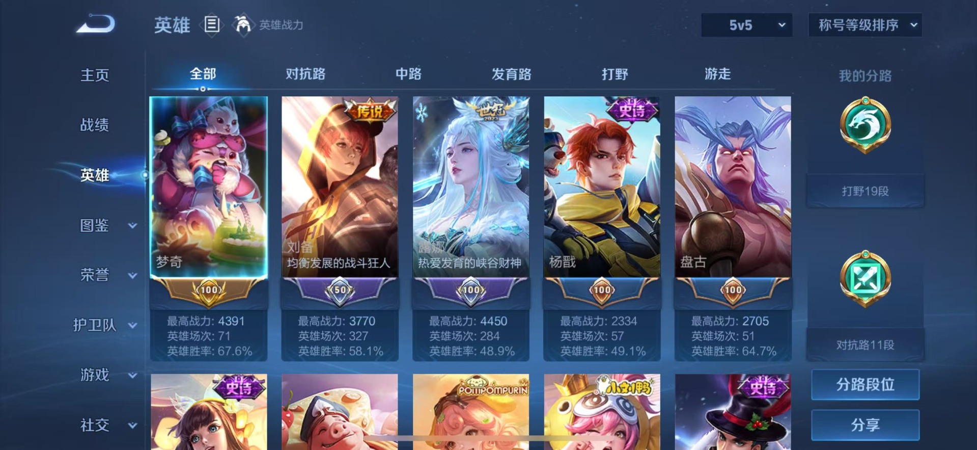 - [11465840]-可二次-V7-123英雄-161皮肤-1典藏-8传说-44史诗 游龙清影-西施 街头霸王-韩信