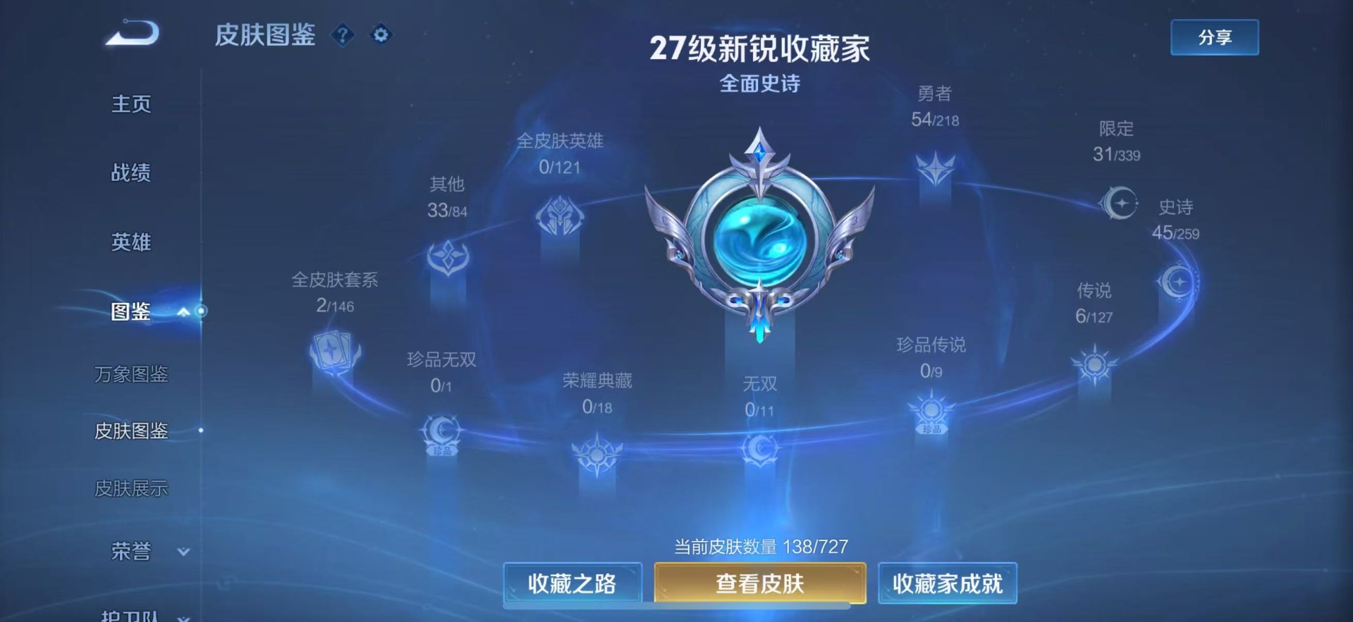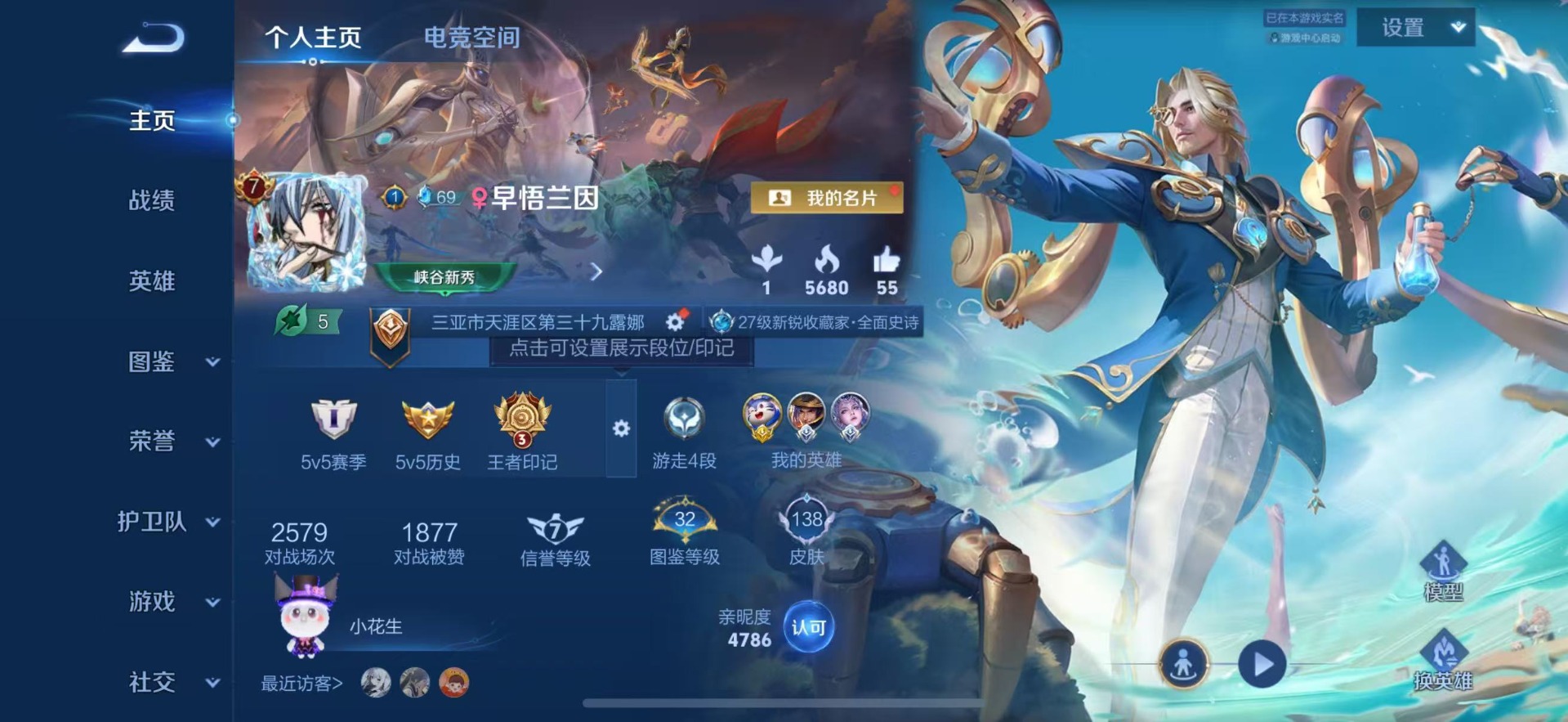 - PX_2060175-实名: 可修改 贵族等级: V7 英雄数: 123 皮肤数: 270 荣耀水晶: 全息碎影 无双皮: 小乔时之魔女 珍品传说: 器灵·落星盏 传说皮: 仲夏夜之梦,零号·赤焰,云诺千山 限定皮: 李小龙,引擎之心,辉光之辰,时之彼端,飞衡,逐梦之影,凤求凰,美猴王,傲雪梅枪,五谷丰年,愿照·岁时盈,愿照·福禄聚,愿照·九州拓