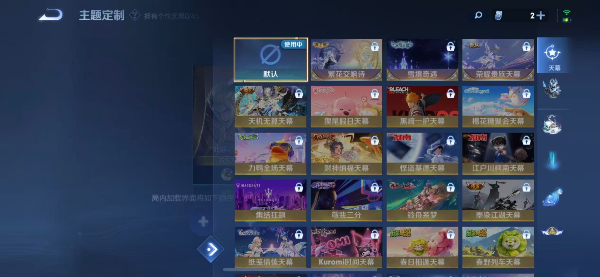 夏侯惇乘风破浪,廉颇地狱岩魂,孙策猫狗日记,赵怀真器灵·浮梦炉,露娜紫霞仙子,刘禅天才门将,刘禅绅士熊喵,宫本武藏鬼剑武藏,兰陵王暗隐猎兽者,貂蝉圣诞恋歌,花木兰水晶猎龙者,白起星夜王子,嬴政摇滚巨星,百里玄策原初追逐者,雅典娜黎明之约,百里守约特工魅影,墨子金属风暴,澜赏金猎手,弈星滕王阁序,娜可露露晚萤,橘右京修罗