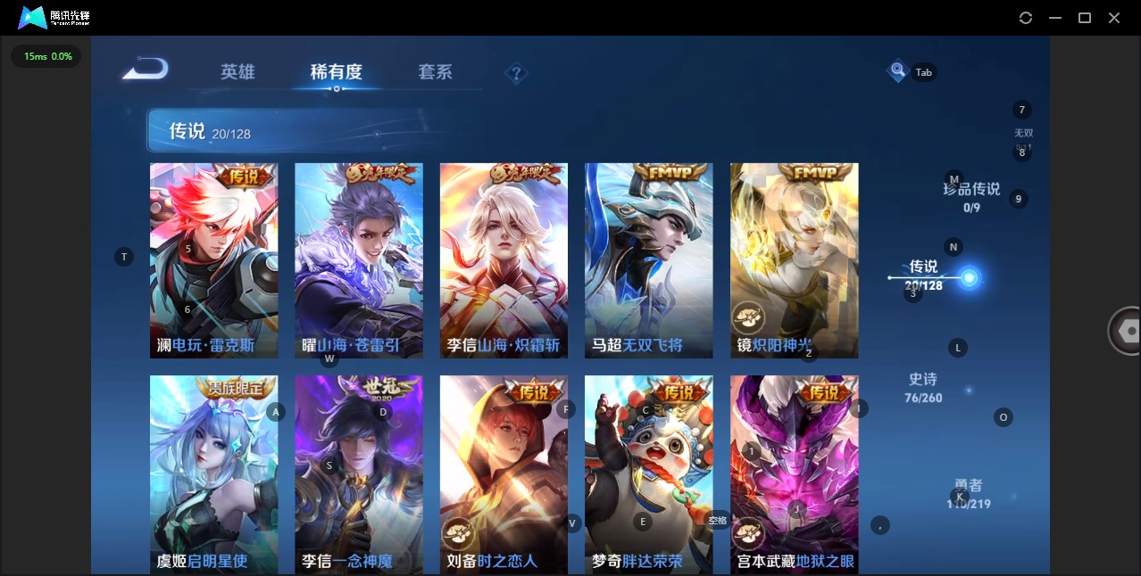 - [11605576]V6 4传说 123英雄 142皮肤 可修改实名 优质装备:地狱火,仲夏夜之梦(大飞蛾),零号·赤焰,涂山容容 珍宝阁皮:蔷薇恋人 限定皮:怒海麟威,五谷丰年,梁祝,李小龙,大圣娶亲,时之奇旅-妲己 史诗皮:遇见神鹿,晚萤,猫狗日记-孙策,女仆咖啡,水果甜心,天才门将,星夜王子,心灵骇客,德古拉伯爵,鬼剑武藏,心灵战警,地狱岩魂,纤云弄巧,繁星吟游(呼啦呼啦),缤纷独角兽,乘风破浪,箭羽风息,金属风暴,鹰眼统帅,魅力维加斯,无心