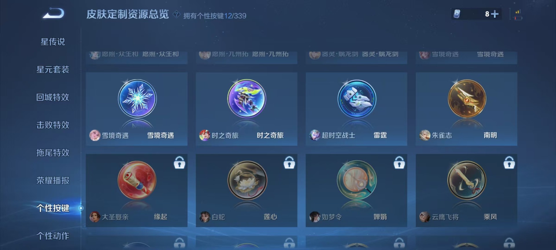 夏侯惇朔风刀,老夫子醍醐杖,沈梦溪星空之诺,沈梦溪大漠名商,盾山御銮,曹操烛龙,苏烈千军破阵,典韦穷奇,达摩沙漠行僧,牛魔御旌,项羽苍威无极,鲁班七号狮舞东方,镜青焰无极,元歌云间偶戏,兰陵王金庭之子,裴擒虎擒涛扼浪,鲁班大师探海日志,明世隐疑决卦,蒙犽狂想玩偶喵,马可波罗暗影游猎,白起狰,鬼谷子原初探秘者,张良古海寻踪,桑启海盐诗旅,狄仁杰万华元夜,程咬金演武夺筹,李元芳银河之约,李元芳云中旅人,弈星混沌棋,虞姬凯尔特女王,米莱狄御霄,钟馗神迹守卫,钟馗驱傩正仪,狂铁御狮,太乙真人饕餮