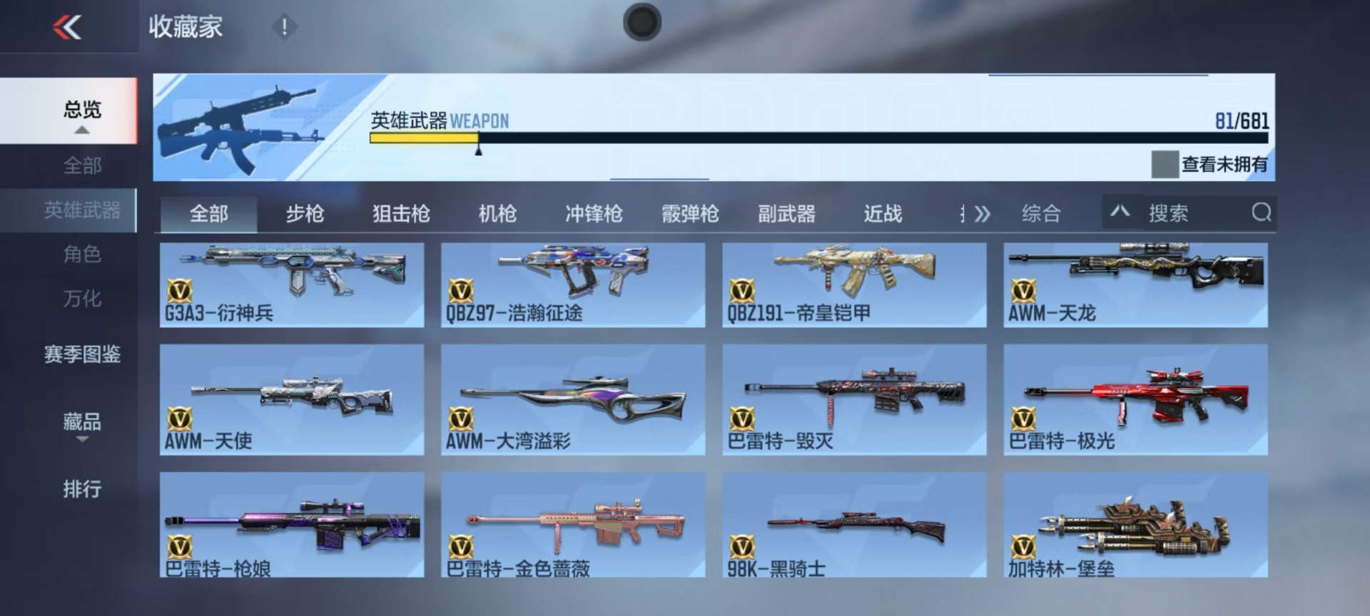 [11524259]可二次 可修改实名 V6 2王者武器 81英雄武器 165万化 枪王S 武器:王者之影,王者之魄,M4A1-雷神,巴雷特-金色蔷薇,巴雷特-极光,巴雷特-毁灭,QBZ95-天使,98K-黑骑士,AWM-天使,MK5-极光,MK5-机械纪元,双持斯泰尔-天使,M4A1-运输船,AK47-冰魂觉醒,AK47-心动次元,AK47-雷麒麟,巴雷特-枪娘,AK12-天启,M14EBR-暗夜,SCAR-幽暗骑士,剑齿虎,AN94-超新星,AWM-天龙,M14EBR-拂影,地狱火,汤姆逊-烈龙,加特林-堡垒,AK47-雅韵青花,气手枪-炼狱,沙鹰-修罗,沙鹰-宇航兔兔,沙鹰-神兵修罗,马来剑-毁灭,沙鹰-飞电,沙鹰-天神,斩魔刀,星芒,丛林匕首-庆龙觉醒,麒麟刺,秋逸,屠龙