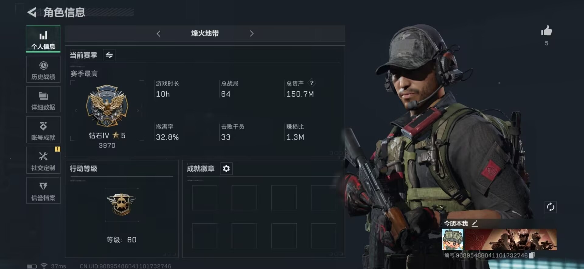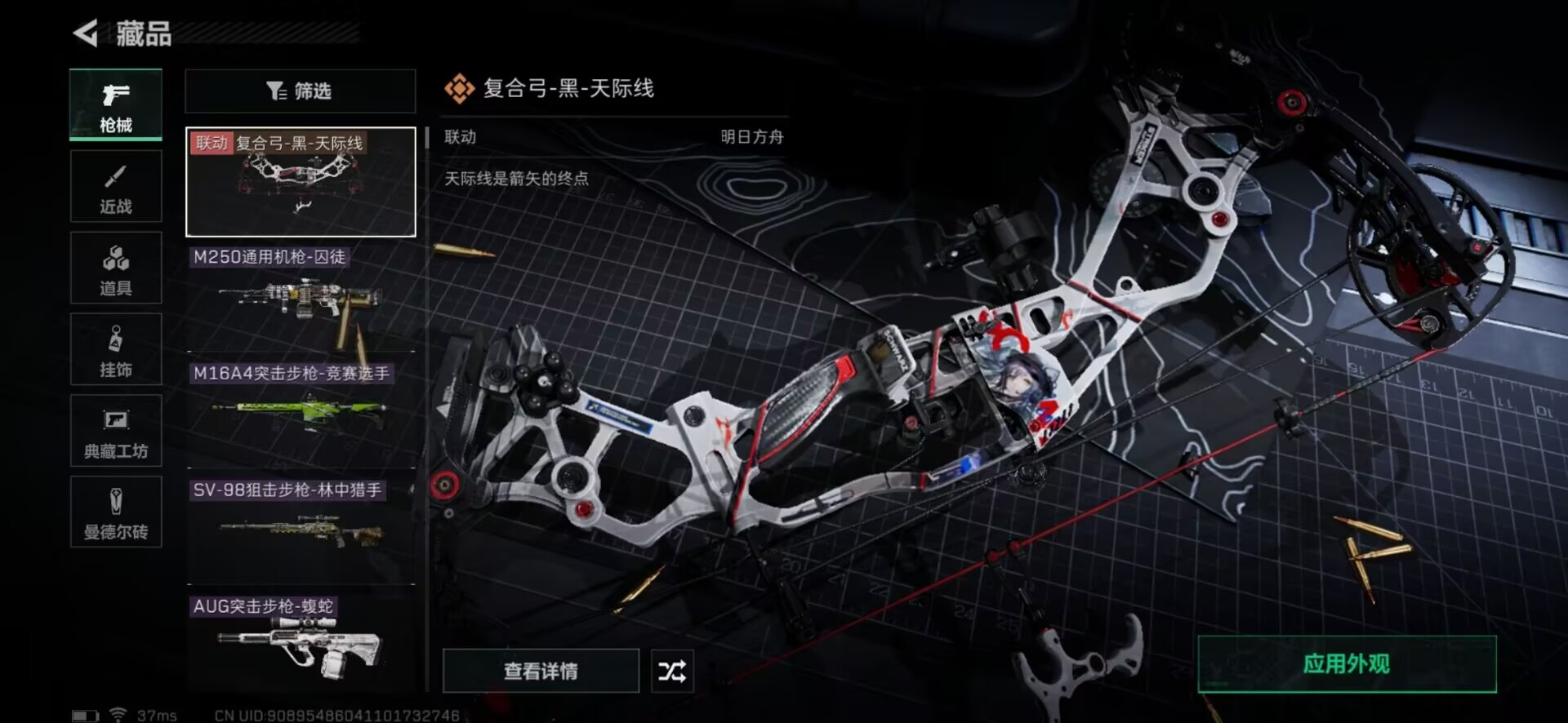 [11524458]总资产:150.7 1传说枪械 可二次 可修改实名 烽火地带段位:钻石 全面战场段位:无段位 哈夫币:60.675 传说武器皮肤:复合弓-黑-天际线 史诗武器皮肤:AUG突击步枪-蝮蛇,M16A4突击步枪-竞赛选手,SV-98狙击步枪-林中猎手,M250通用机枪-囚徒