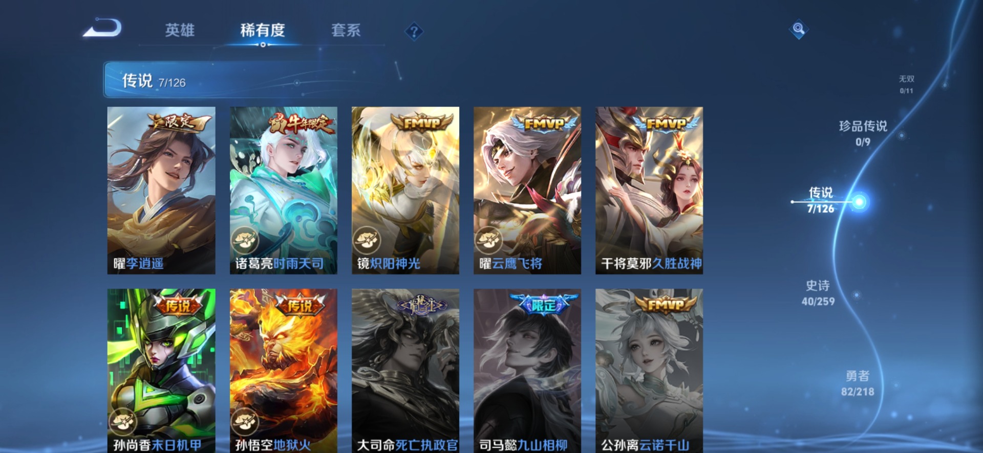 - [11683726]V8 2典藏 2珍品传说 21传说 126英雄 293皮肤 典藏英雄武则天 可修改实名 优质装备:鸣剑·曳影,拾光映像(瑶典藏),大耳狗之梦,黄金狮子座,冠军飞将,久胜战神,云霓雀翎,仲夏夜之梦(大飞蛾),音你心动-小乔,海洋之心,胖达荣荣,淬星耀世,音你闪耀(rap皮),神器·狴犴令,山海·炽霜斩(李信年限),追逃游戏(亚瑟),电玩·雷克斯,永恒水手月亮 珍品传说:兔狲·蓬尾 传说皮:云诺千山,幻光神枪 珍宝阁皮:妄想食味,玩趣恶龙 限定皮:凤求凰(白切鸡),前尘镜,遇见飞天,怒海麟威,五谷丰年,梁祝,烈魂,天狼绘梦者,朱雀志(守约年限),辉光之辰,如梦令-嫦娥,孙行者,乒乒小将,唐三藏,时之奇旅-妲己,山海·玄木吟(马可年限) 史诗皮:鸭鸭历险记-刘禅,龙之律动,石田雨龙,茶境仙,蔬乡物语(鲁班七号),紫霞仙子,特工魅影,千年之狐,永昼,电玩·爆裂旋风,江河有灵,百解令(蒙犽),高渐离燃音魔法,蒙恬荣光圣徽,偶像歌手,龙骑士(小龙虾),白蛇,暗夜猫娘,青蛇,末日机甲-吕布,猫狗日记-孙策,乱世虎臣,节奏热浪,修罗,女仆咖啡,摇滚巨星,水果甜心,星夜王子,心灵骇客,功夫厨神,德古拉伯爵,暗隐猎兽者,幽灵船长,鬼剑武藏,心灵战警,乐园奇幻夜,地狱岩魂,诗语江南,纤云弄巧,繁星吟游(呼啦呼啦),拒霜思,缤纷独角兽,乘风破浪,逐浪之夏,水晶猎龙者,曙光守护者,热力回旋,箭羽风息,唤灵魅影,金属风暴,圣诞狂欢,圣诞恋歌,鹰眼统帅,王者之锤,暗夜贵公子,黎明之约,滕王阁序,顽趣-阿古朵,无心,未来纪元-赵云