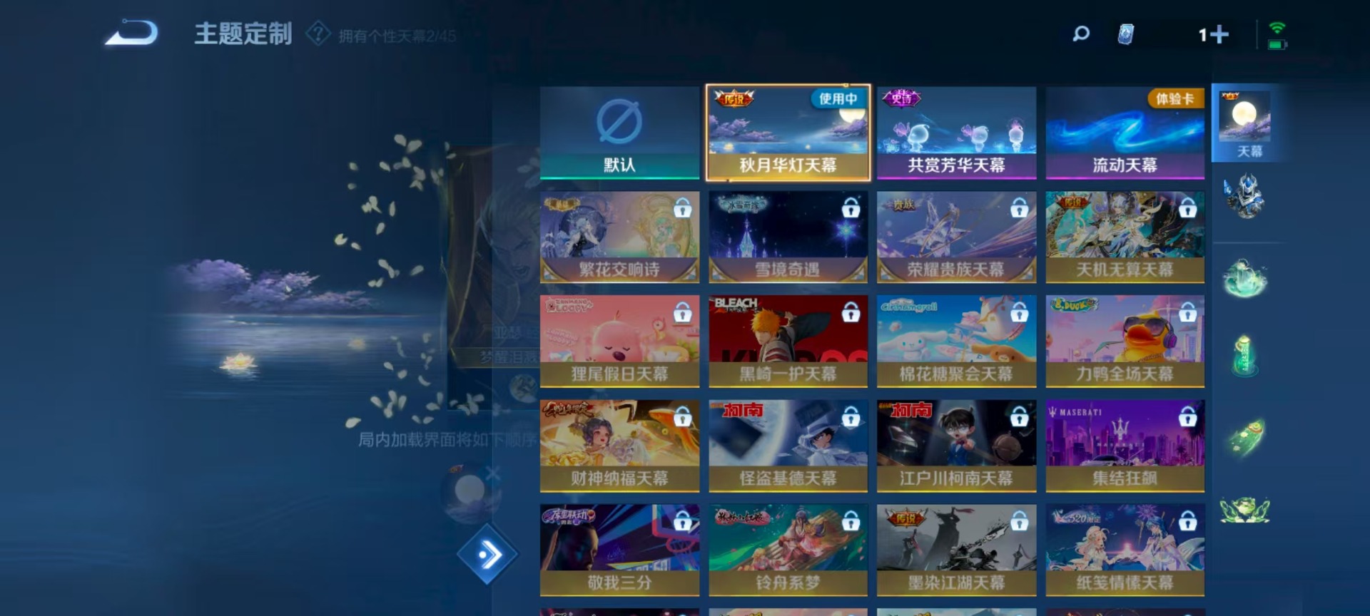 高渐离燃音魔法,刘邦德古拉伯爵,夏侯惇乘风破浪,阿轲暗夜猫娘,阿轲节奏热浪,铠曙光守护者,曹操幽灵船长,廉颇地狱岩魂,小乔缤纷独角兽,不知火舞魅语,赵怀真器灵·浮梦炉,吕布圣诞狂欢,吕布末日机甲,诸葛亮黄金分割率,刘禅天才门将,宫本武藏鬼剑武藏,兰陵王暗隐猎兽者,貂蝉圣诞恋歌,花木兰水晶猎龙者,李白千年之狐,白起星夜王子,亚瑟心灵战警,嬴政摇滚巨星,程咬金功夫厨神,雅典娜冰冠公主,雅典娜黎明之约,李元芳逐浪之夏,百里守约特工魅影,墨子金属风暴,蔡文姬舞动绿茵,嫦娥拒霜思,橘右京修罗