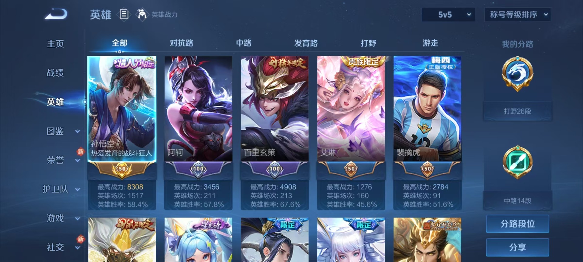 - [12260717]V7 8传说 123英雄 226皮肤 可修改实名 优质装备:猫影幻舞,零号·赤焰,超时空战士-狄仁杰,山海·炽霜斩(李信年限) 传说皮:幻光神枪 珍宝阁皮:女武神,玩趣恶龙 限定皮:逐霄战戟,鸣野蒿,至尊宝,异界灵契(白毛香),诗剑行,五谷丰年,梁祝,李小龙,霸王别姬-虞姬,孙行者,引擎之心,山海·玄木吟(马可年限) 史诗皮:器灵·浮梦炉,绮世丹青,化蝶舞,百相守梦-黄忠,紫霞仙子,江河有灵,魅语,百解令(蒙犽),蒙恬荣光圣徽,冰冠公主,乱世虎臣,节奏热浪,女仆咖啡,摇滚巨星,水果甜心,绅士熊喵,星夜王子,心灵骇客,鬼剑武藏,心灵战警,纤云弄巧,繁星吟游(呼啦呼啦),拒霜思,逐浪之夏,水晶猎龙者,金属风暴,圣诞狂欢,圣诞恋歌,鹰眼统帅,魅力维加斯,无心,未来纪元-赵云