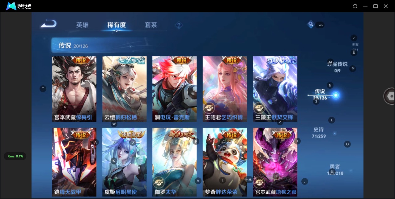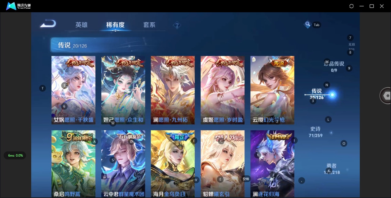 - [11866359]V8 1典藏 19传说 125英雄 222皮肤 可修改实名 优质装备:鸣剑·曳影,云鹰飞将(小将军),绛天战甲(鸡嘴战神),炽阳神光,一念神魔,云霓雀翎,仲夏夜之梦(大飞蛾),李逍遥,淬星耀世,末日机甲-孙策,山海·苍雷引(电光曜子),浮生妄 传说皮:云诺千山 珍宝阁皮:优雅恋人,女武神 限定皮:白虎志(电光耗子),凤求凰(白切鸡),异界灵契(白毛香),时雨天司(水龙头),神威(电光马子),遇见飞天,高山流水,诗剑行,五谷丰年,御风骁将(吕布年限),祈雪灵祝(雪兔子),天狼绘梦者,李小龙,默契交锋-花木兰,大圣娶亲 史诗皮:鸭鸭历险记-刘禅,龙之律动,石田雨龙,织梦人,紫霞仙子,电玩小子(小书包),白龙吟,特工魅影,千年之狐,永昼,江河有灵,魅语,无限星赏官,冰冠公主,偶像歌手,白蛇,晚萤,电玩·爆裂旋风,暗夜猫娘,猫狗日记-孙策,时之恋人-孙尚香,节奏热浪,修罗,女仆咖啡,水果甜心,天才门将,星夜王子,时之奇旅-安琪拉,功夫厨神,德古拉伯爵,暗隐猎兽者,幽灵船长,鬼剑武藏,暗渊魔法,舞动绿茵,地狱岩魂,纤云弄巧,繁星吟游(呼啦呼啦),拒霜思,缤纷独角兽,乘风破浪,逐浪之夏,曙光守护者,热力回旋,箭羽风息,原初追逐者,圣诞恋歌,鹰眼统帅,魅力维加斯,黎明之约,赏金猎手,无心,未来纪元-赵云