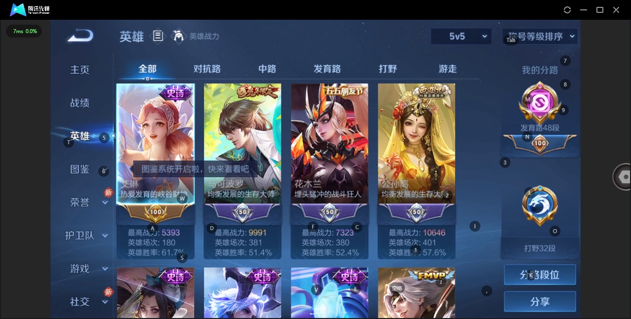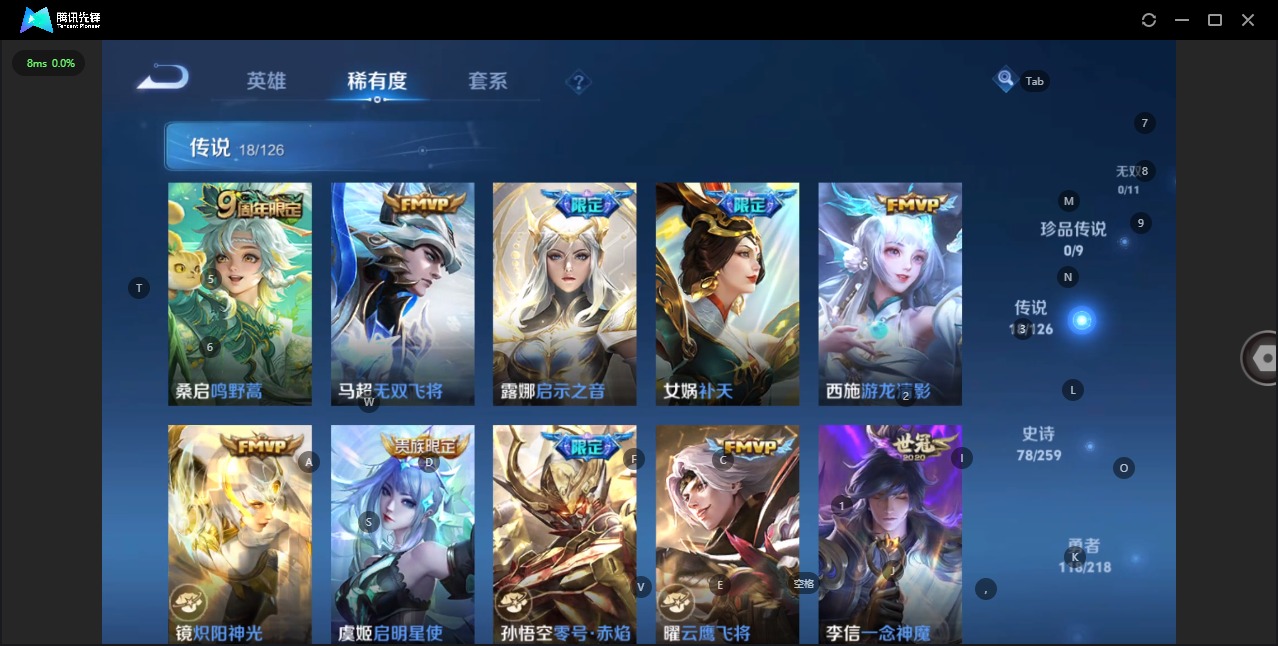 - PX_2102731-实名: 可修改 贵族等级: V6 英雄数: 123 皮肤数: 117 星传说: 幽冥火 传说皮: 地狱火 限定皮: 李小龙,飞衡,白虎志,青龙志,鸣野蒿,逐霄战戟