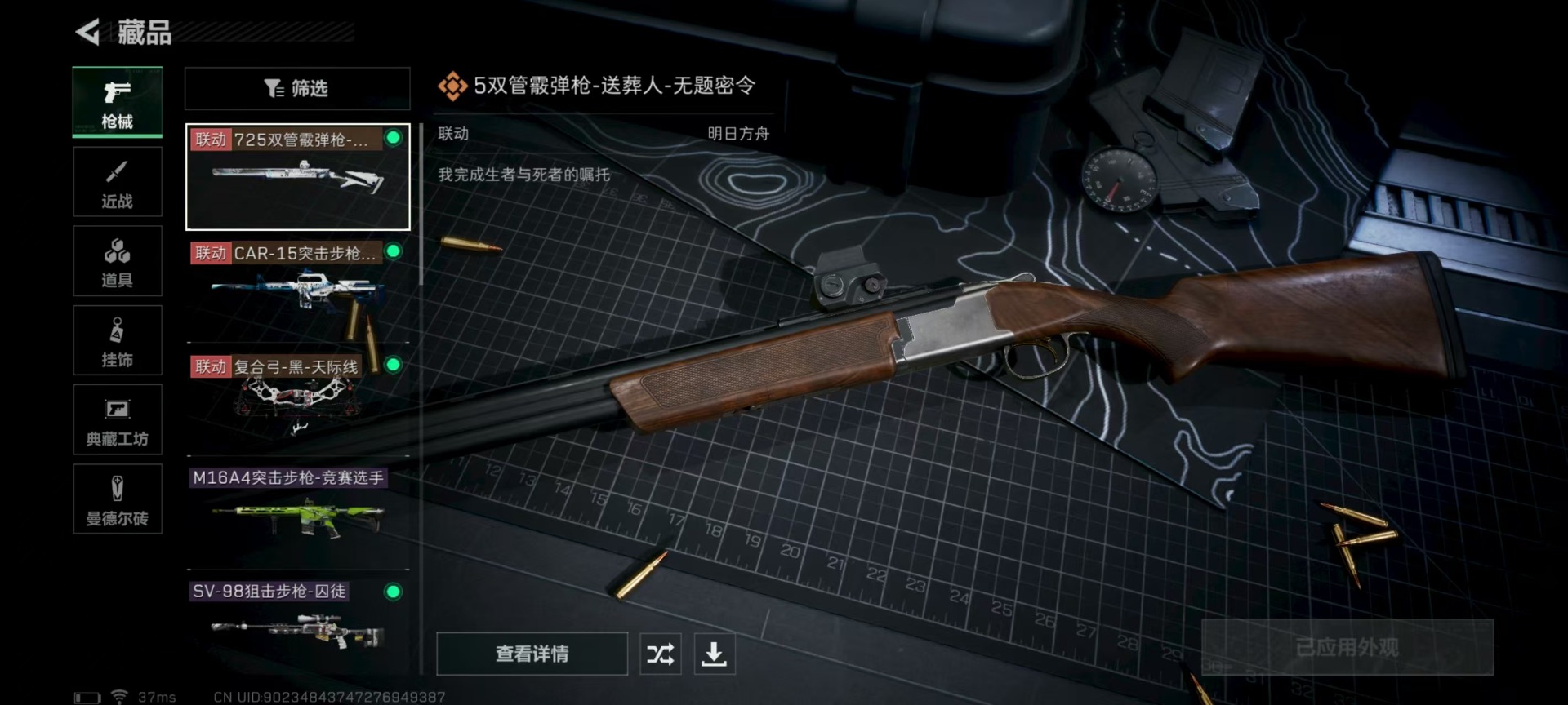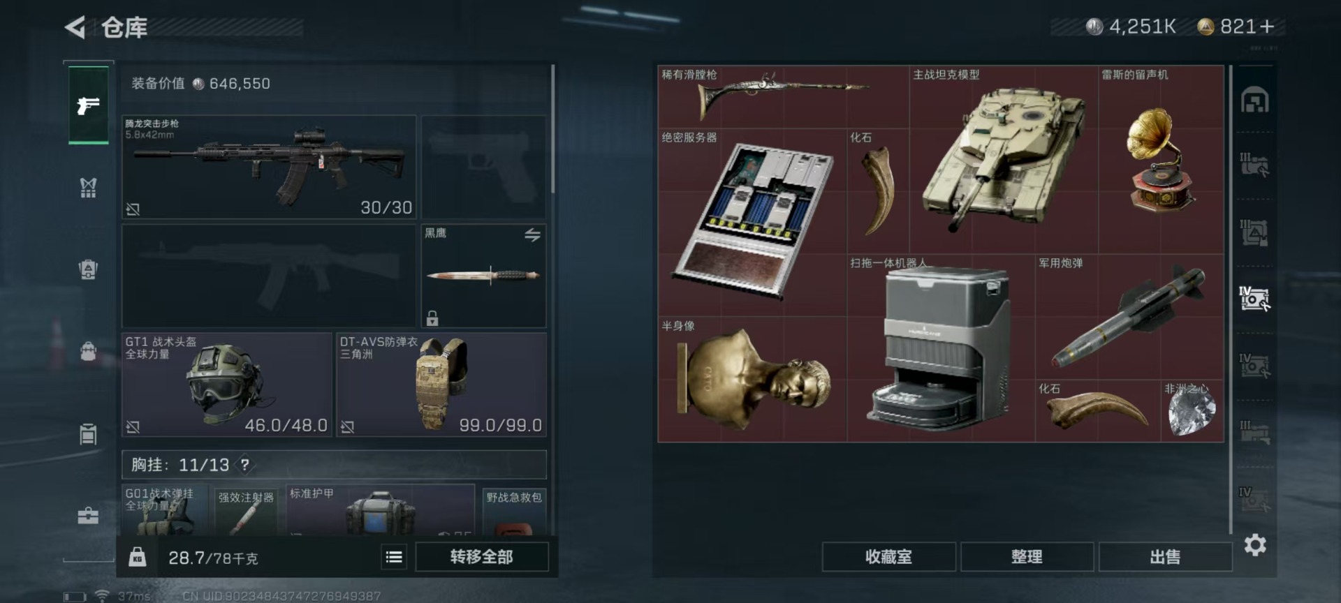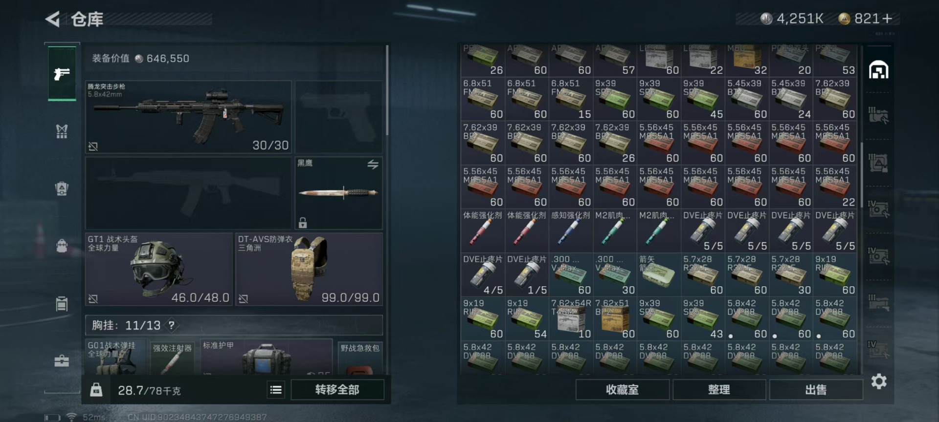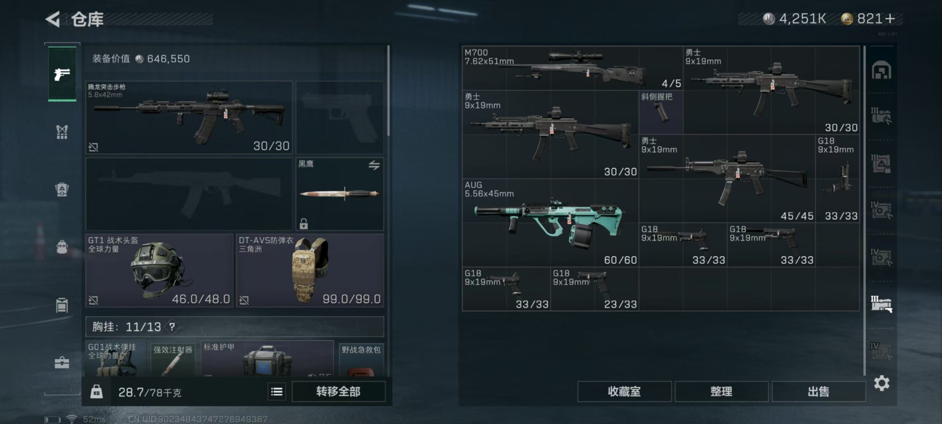 [11524758]总资产:147.7 2干员外观 3传说枪械 高级安全箱(9.17到期) 可二次 可修改实名 烽火地带段位:铂金 全面战场段位:无段位 哈夫币:4.251 传说武器皮肤:复合弓-黑-天际线,CAR-15突击步枪-阿米娅,725双管霰弹枪-送葬人-无题密令 史诗武器皮肤:PKM通用机枪-荒野求生,勇士冲锋枪-深海恐惧,AKM突击步枪-林中猎手,M16A4突击步枪-竞赛选手,SVD狙击步枪-荒野求生,M1014霰弹枪-林中猎手,PTR-32突击步枪-英雄,PSG-1射手步枪-无垢,M250通用机枪-囚徒,SV-98狙击步枪-囚徒,SCAR-H战斗步枪-囚徒,腾龙突击步枪-无垢,MP7冲锋枪-无垢 干员外观:蜂医-送葬人·无题密令(S5),露娜-黑·天际线