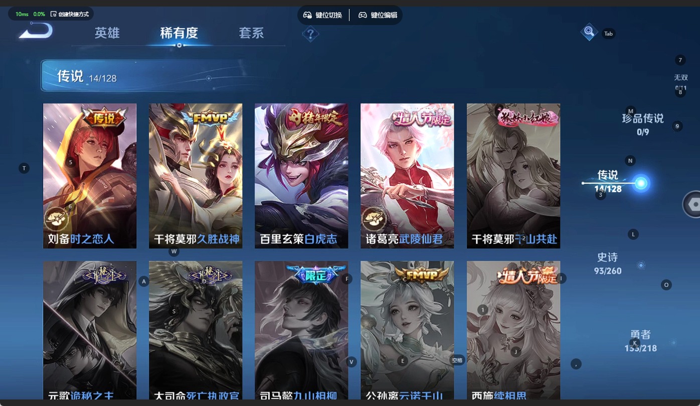 - [12312533]V5 2传说 123英雄 175皮肤 可修改实名 珍宝阁皮:妄想食味,蔷薇恋人 限定皮:愿照·九州拓(澜年限),鸣野蒿,五谷丰年,李小龙 史诗皮:器灵·浮梦炉,化蝶舞,茶境仙,百相守梦-黄忠,紫霞仙子,特工魅影,江河有灵,高渐离燃音魔法,冰冠公主,偶像歌手,电玩·爆裂旋风,末日机甲-吕布,乱世虎臣,节奏热浪,水果甜心,星夜王子,心灵骇客,德古拉伯爵,暗隐猎兽者,鬼剑武藏,心灵战警,地狱岩魂,乘风破浪,水晶猎龙者,金属风暴,原初追逐者,圣诞狂欢,圣诞恋歌,鹰眼统帅,暗夜贵公子,无心,未来纪元-赵云