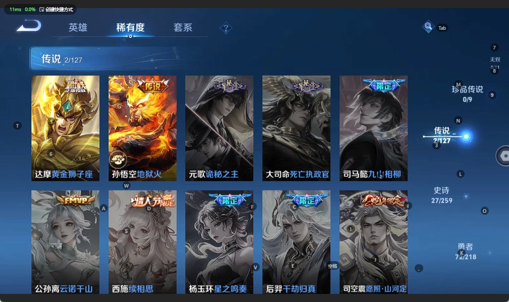 - [12091297]V8 3珍品传说 27传说 124英雄 217皮肤 可修改实名 优质装备:江户川柯南,大耳狗之梦,黄金射手座,云鹰飞将(小将军),绛天战甲(鸡嘴战神),炽阳神光,一念神魔,云霓雀翎,海洋之心,超时空战士-狄仁杰,无双飞将,浮生妄,鹤羽星尊,妄想实况,玄雷天君 珍品传说:兔狲·蓬尾 传说皮:云诺千山,续相思,祥瑞亨通,幻光神枪 珍宝阁皮:女武神 限定皮:愿照·九州拓(澜年限),愿照·福禄聚(蔡文姬年限),愿照·岁时盈(虞姬年限),愿照·山河定(司空震年限),愿照·众生和(妲己年限),愿照·千秋盛(女娲年限),逐霄战戟,陌上桑,鸣野蒿,绯月行,怒海麟威,李小龙,山海·玄木吟(马可年限) 史诗皮:鸭鸭历险记-刘禅,苍鳞隐世,器灵·浮梦炉,糖绘人间,狼魂孤将,绮世丹青,瑰影绮梦,化蝶舞,谪仙醉月,龙之律动,雪豹·霜爪,藏狐·褐绒,布丁狗之誓,茶境仙,怒海争锋,蒙犽顽岩魄,琥珀纪元伽罗,遇见神鹿,紫霞仙子,特工魅影,江河有灵,青蛇,偶像歌手,白蛇,晚萤,末日机甲-吕布,时之恋人-孙尚香,乱世虎臣,修罗,摇滚巨星,水果甜心,功夫厨神,暗隐猎兽者,幽灵船长,鬼剑武藏,乐园奇幻夜,缤纷独角兽,乘风破浪,逐浪之夏,水晶猎龙者,热力回旋,箭羽风息,金属风暴,圣诞狂欢,鹰眼统帅,魅力维加斯,赏金猎手
