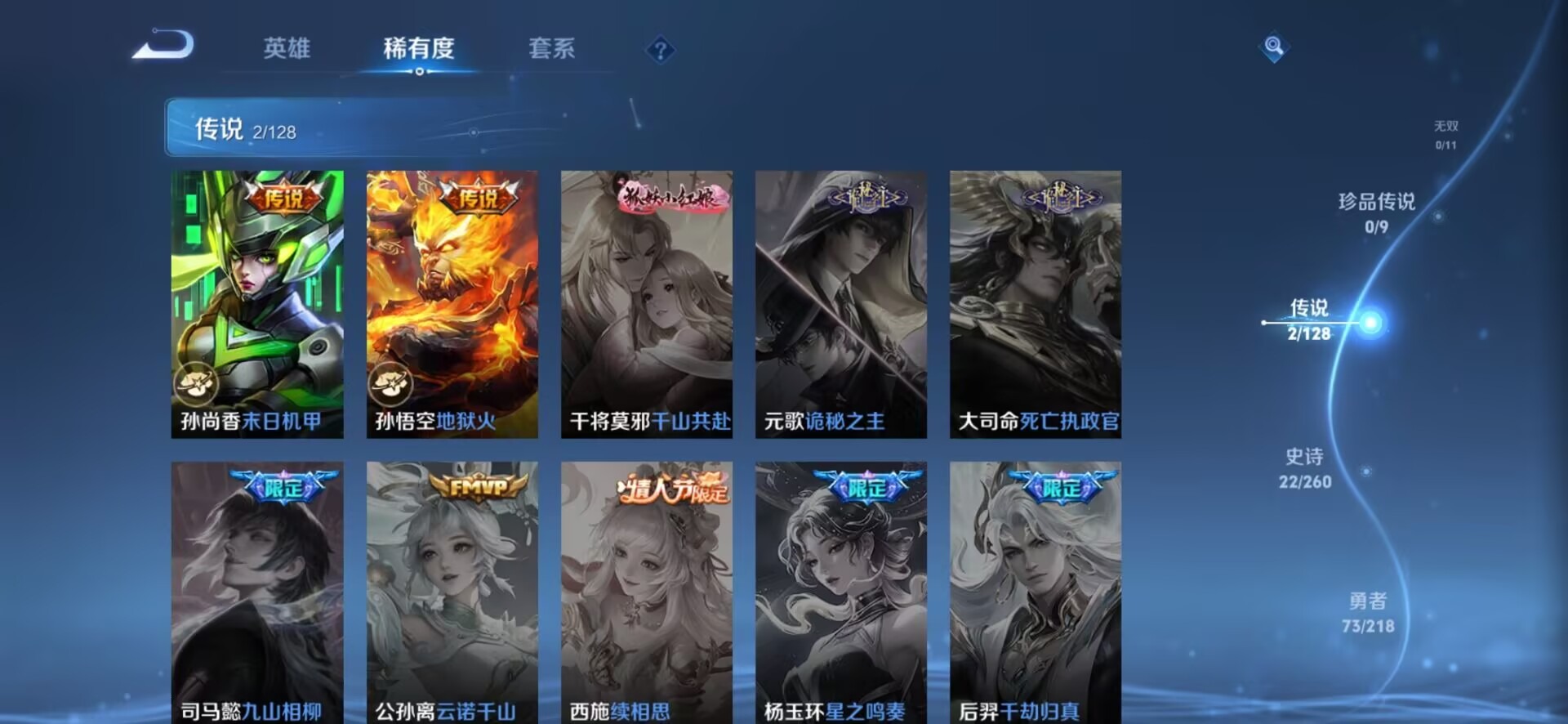 - [11527070]V7 1典藏 3传说 125英雄 217皮肤 典藏英雄武则天 可修改实名 优质装备:全息碎影(猴子典藏),地狱火,海洋之心,地狱之眼 珍宝阁皮:蔷薇恋人,玩趣恶龙 限定皮:至尊宝,飞衡(韩信年限),瑞麟志(木兰年限),遇见飞天,高山流水,梁祝,李小龙,朱雀志(守约年限),如梦令-后羿,猪悟能,一生所爱,大圣娶亲 史诗皮:海诺心动手记,决胜骁骑,紫霞仙子,苍穹之光,电玩小子(小书包),白龙吟,黄金分割率,千年之狐,永昼,百解令(蒙犽),无限星赏官,冰冠公主,偶像歌手,末日机甲-吕布,节奏热浪,修罗,水果甜心,天才门将,星夜王子,心灵骇客,德古拉伯爵,暗隐猎兽者,幽灵船长,鬼剑武藏,心灵战警,舞动绿茵,拒霜思,缤纷独角兽,乘风破浪,水晶猎龙者,曙光守护者,金属风暴,原初追逐者,圣诞狂欢,圣诞恋歌,鹰眼统帅,魅力维加斯,黎明之约,未来纪元-赵云