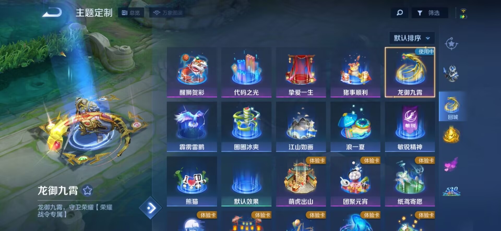 夏侯惇朔风刀,老夫子醍醐杖,沈梦溪大漠名商,盾山御銮,曹操烛龙,典韦穷奇,典韦蓝屏警告,达摩沙漠行僧,牛魔御旌,鲁班七号狮舞东方,吕布猎兽之王,兰陵王金庭之子,裴擒虎擒涛扼浪,鲁班大师探海日志,鬼谷子原初探秘者,女娲朔望之晖,桑启海盐诗旅,狄仁杰万华元夜,嬴政白昼王子,芈月重明,李元芳云中旅人,弈星混沌棋,米莱狄御霄,钟馗神迹守卫,狂铁御狮,太乙真人饕餮